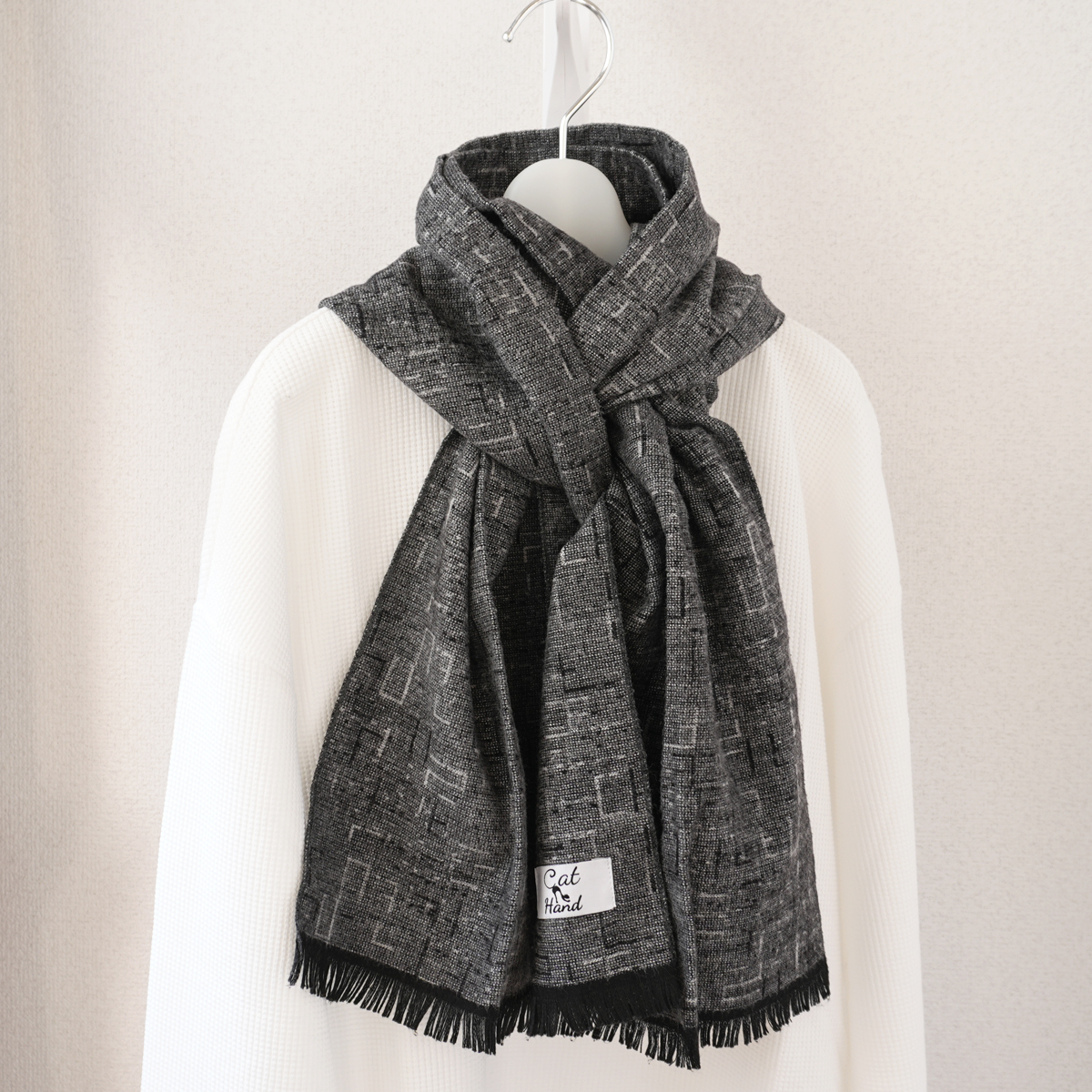 マフラー・ストール とても柔らかい 防寒具 おしゃれ レディース グレー柄 中古品 (M-38)