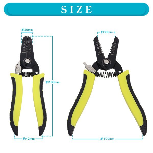 Б ペンチ ワイヤーストリッパー ケーブルストリッパー ワイヤーカッター ワイヤカット ワイヤーストリッパー 配線 修理 黄