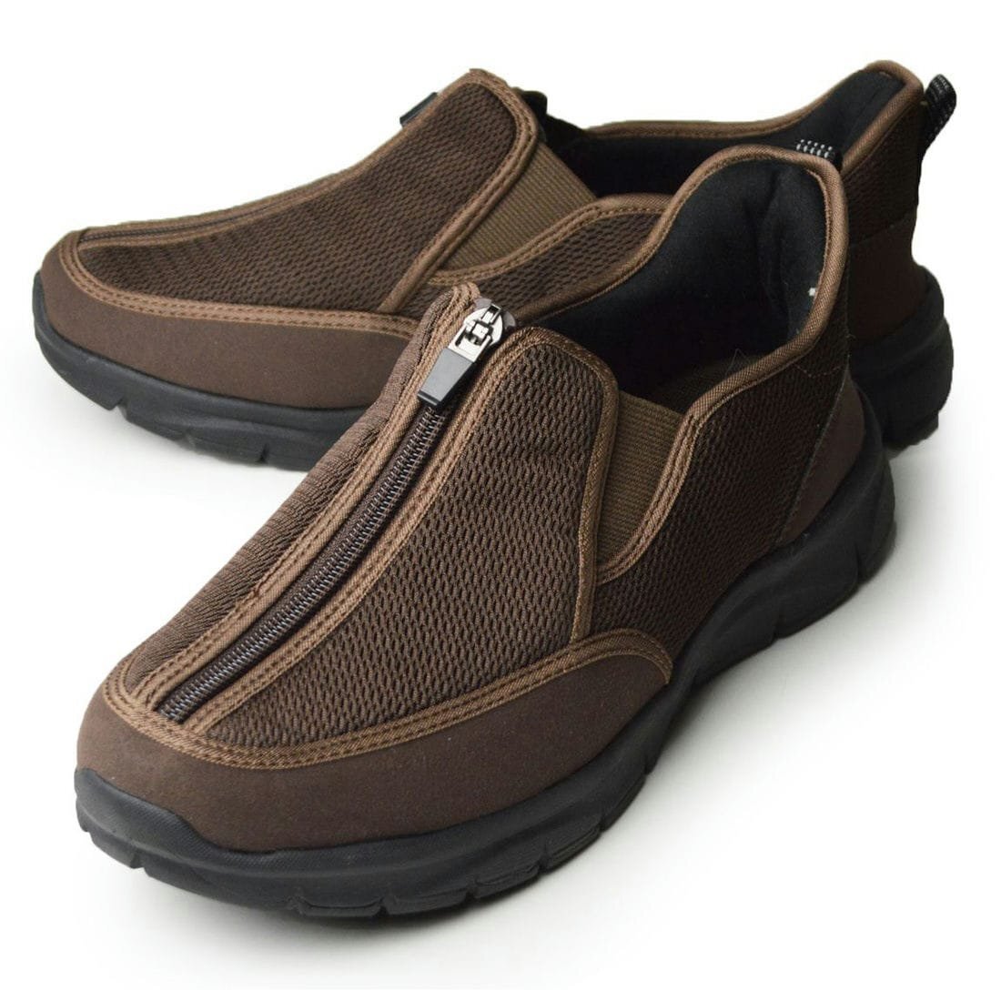 新品■27cm 軽量 防滑 スニーカー ウォーキングシューズ 着脱簡単 フロントジップ 幅広 ワイド 4E メンズ カジュアル 靴【エコ配送】