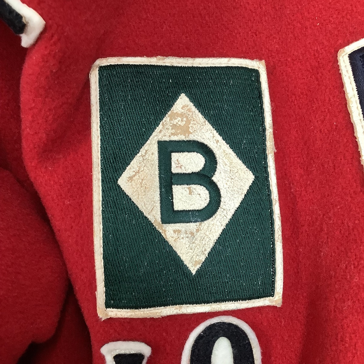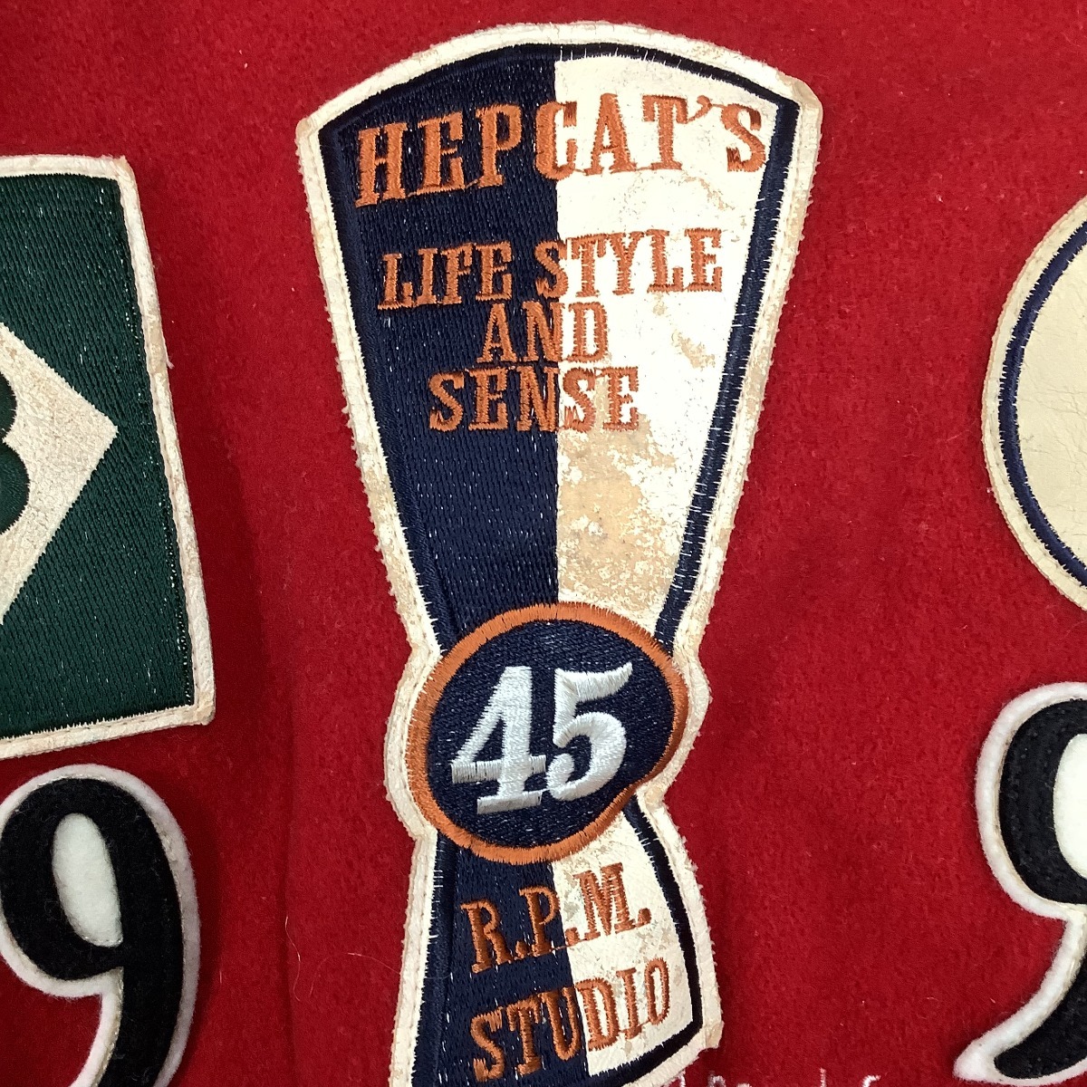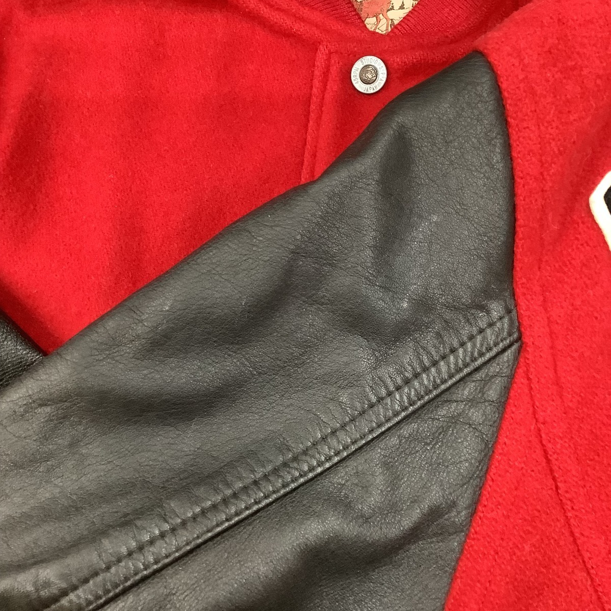 ワッペンに劣化、袖に汚れが見受けられます。