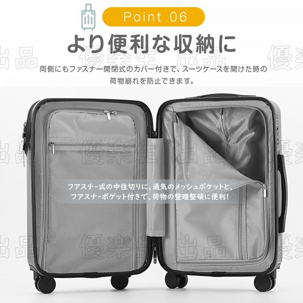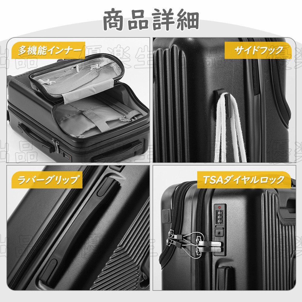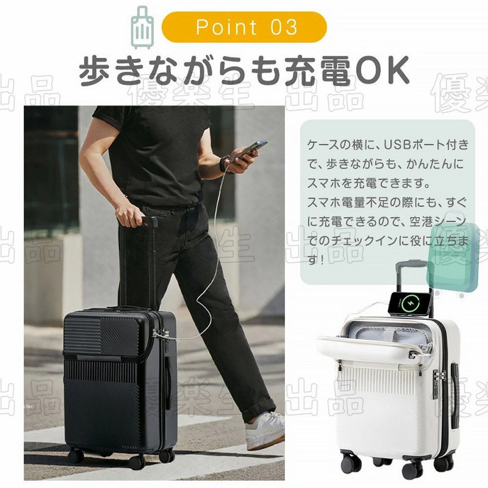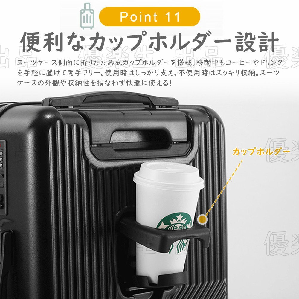 スーツケース 機内持ち込み 軽量 L キャリーケース USBポート カップホルダー フック搭載 旅行 69L フロントオープン