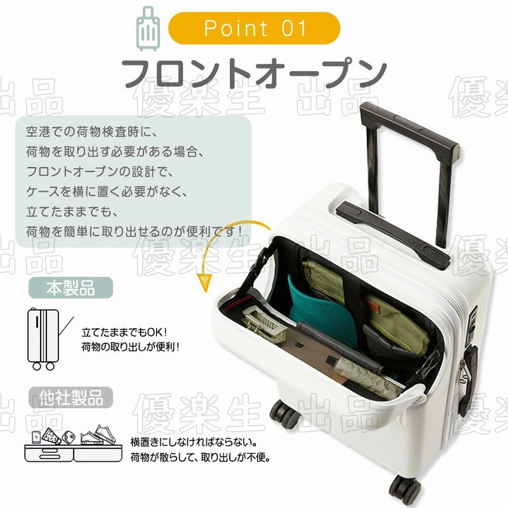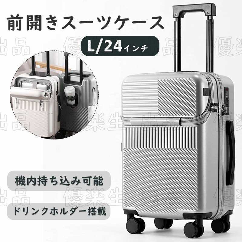 スーツケース 機内持ち込み 軽量 L キャリーケース USBポート カップホルダー フック搭載 旅行 69L フロントオープン yhw071.gy.L