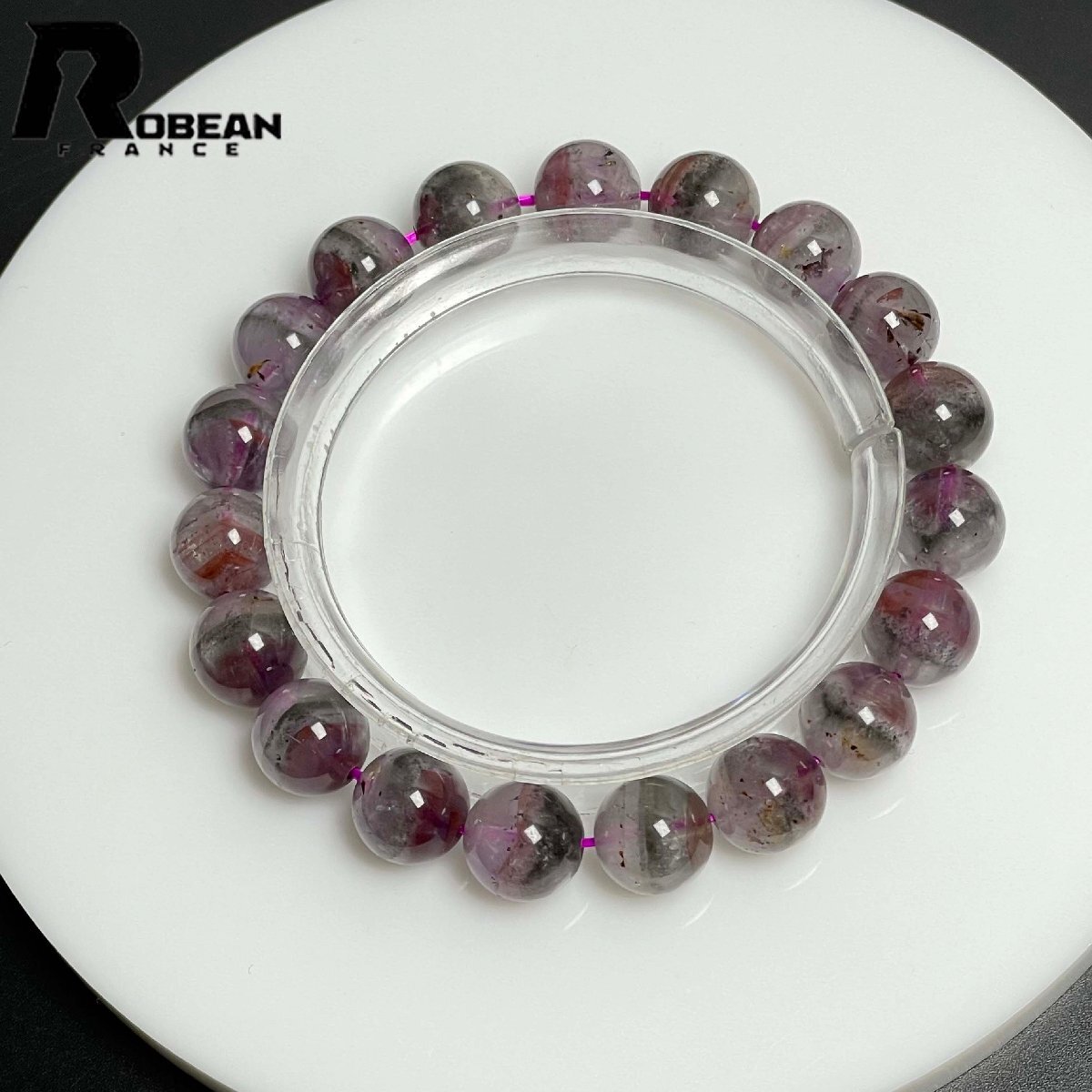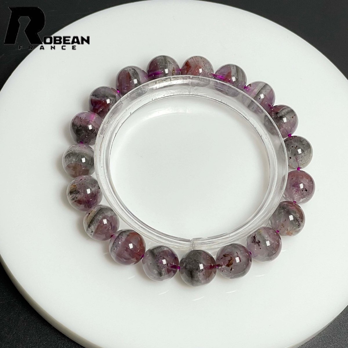 逸品 EU製 定価14万円★ROBEAN・オーロラクォーツ・イン・スーパーセブン★パワーストーン ブレスレット 天然石 綺麗 9.9-10.3mm