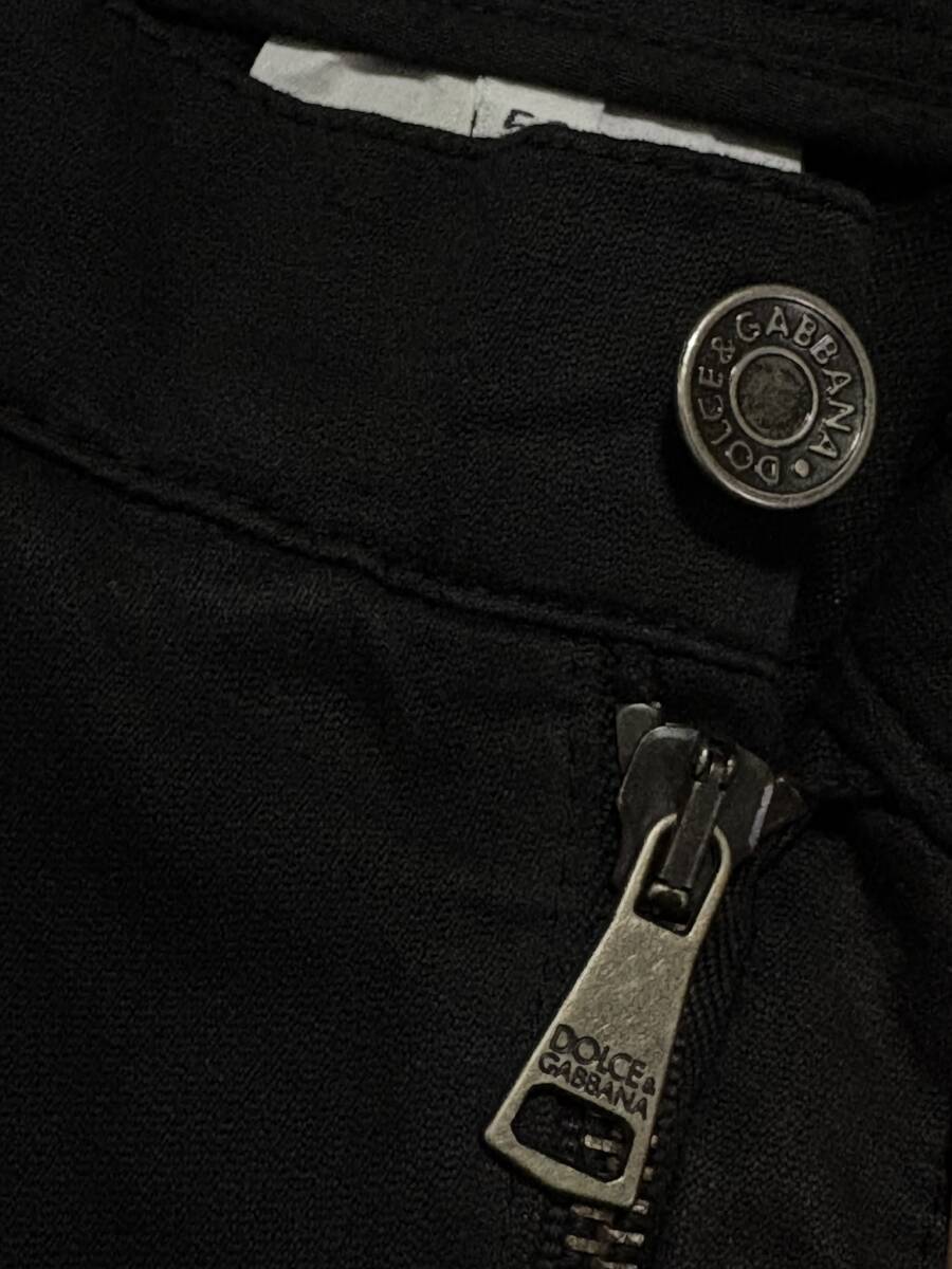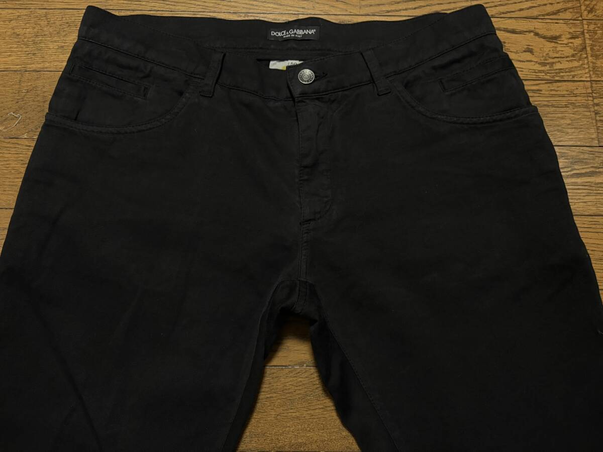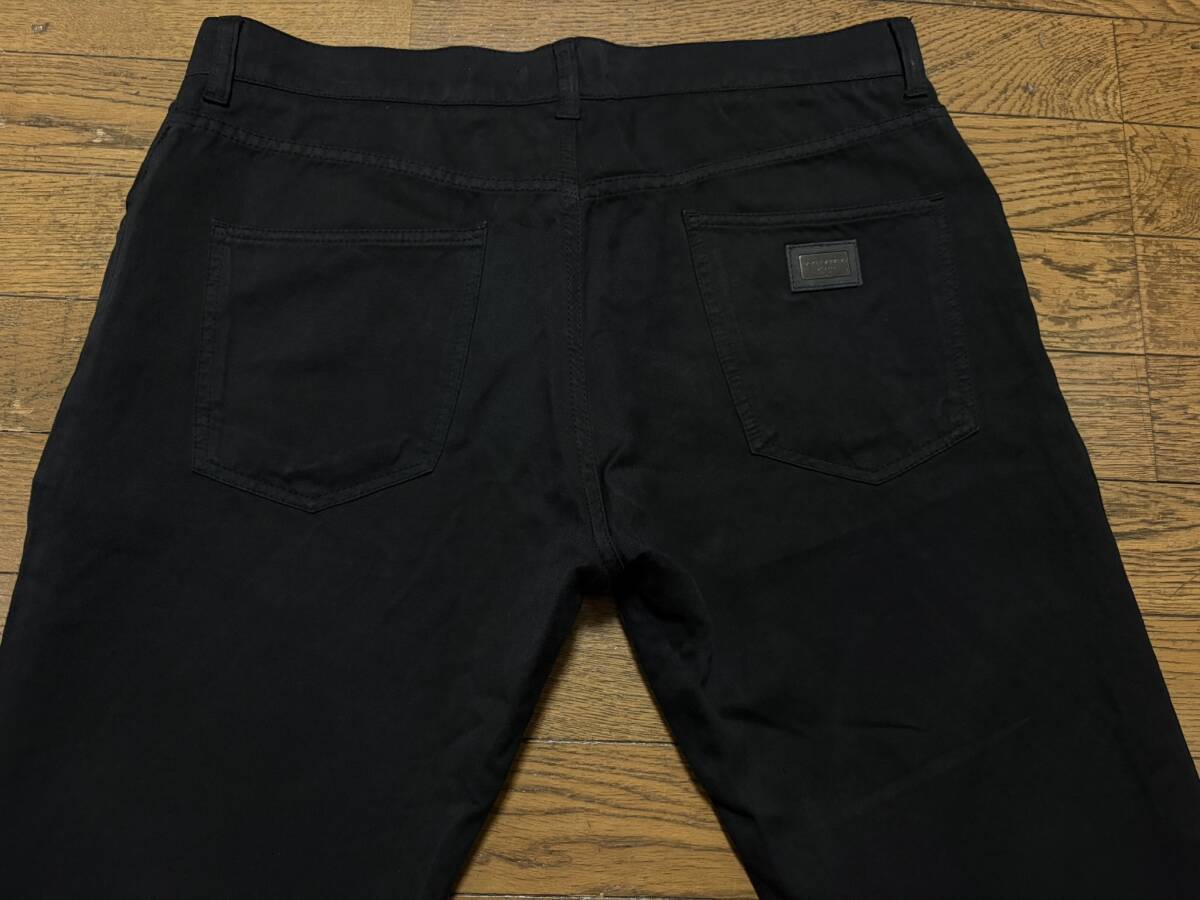 DOLCE&GABBANA ドルチェ&ガッバーナ 14GOLD メタルロゴプレートリネン混パンツ ブラック イタリア製 大きいサイズ 50  BJBE.AA