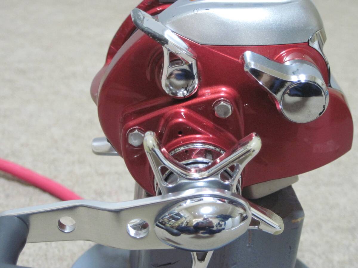 カウンター窓周囲(上面)に塗装剥がれを伴う擦り傷が多く見られます(画像4・9)。クラッチレバーとスタードラグ先端に樹脂メッキの剥がれが見られます(画像6・7)。スプールに擦り傷が幾つか見られます(画像2・8・9)。フレームに幾つかの塗装剥がれが見られます(画像2・8・9)。ライン送り出し時のスプール音が若干大きい感じです。使用感は強めですがその他の機関は大変良好です実使用上は全く問題有りません。出品はダイワ シーボーグ400FBe 本体、スーパーパワーコード(レッド)、取扱説明書コピーが付属します、宜しくお願い致します。