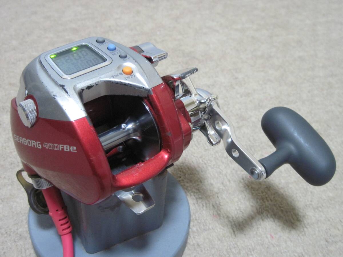 ご覧頂き大変有難うございます。Daiwa SEABORG 400FBe 走行62.9km、通電186時間の中古となります。手持ちに最適ロープロフィルボディ、MAG-MAXモーター搭載によるハイパワーが特徴です。ザブザブ洗えるのでメンテナンスはバッチリです。パワーレバー、リセットスイッチ、底から/棚メモスイッチ、自動しゃくりなどを設定するモードスイッチなど便利機能満載です。また、液晶表示部にはランプによる照明が付いていますので、夜釣りや早朝の準備に大変便利です。真鯛、ハナダイ、鯵、イサキ、イナダ、ワラサ、ヤリイカ、スルメイカなどに幅広くご使用いただけます。