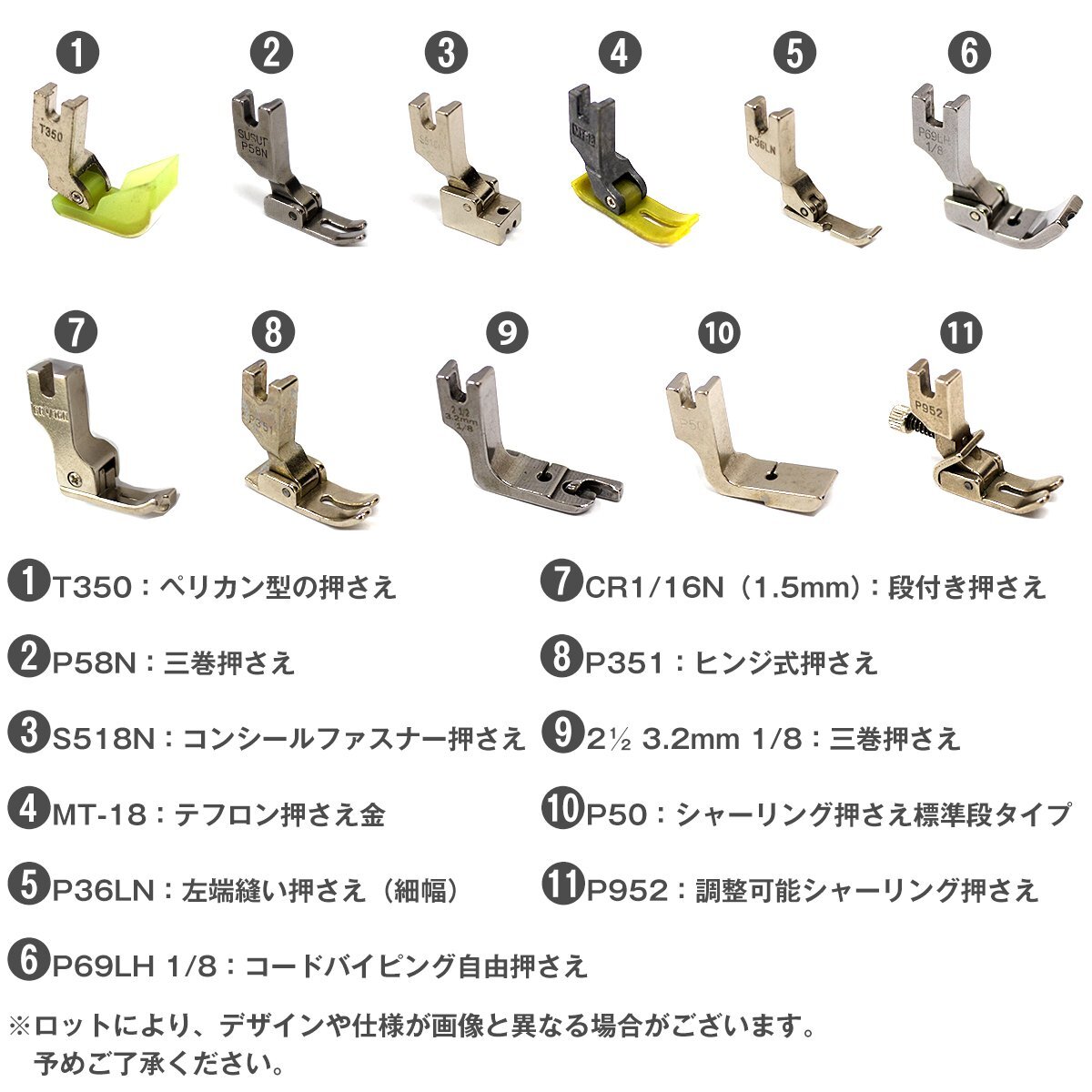 【送料無料】ミシン アタッチメント 11点 セット 工業用 職業用 業務用ミシン 多機能 押さえ 押さえ足 押さえ金 1/2 1/8 ヒンジ式