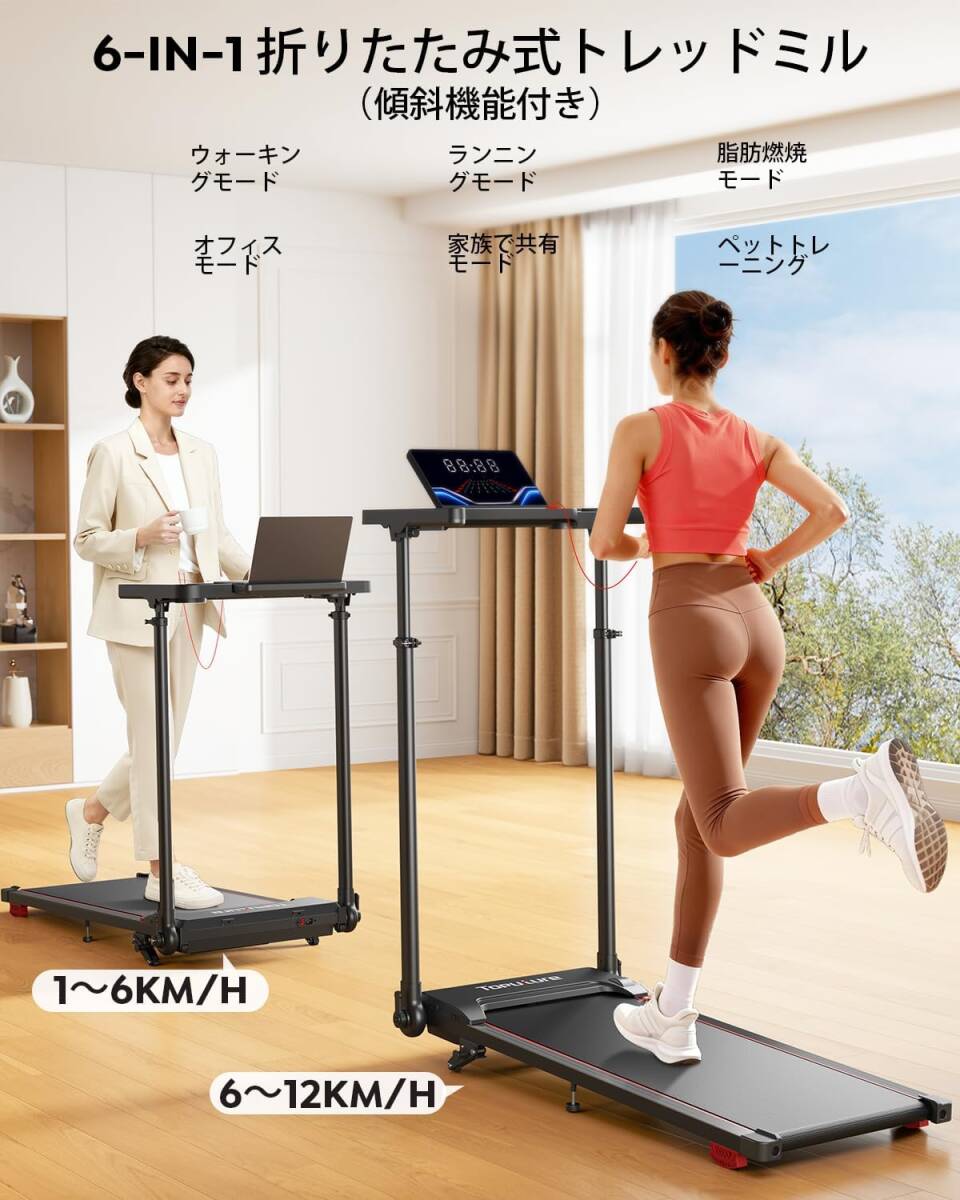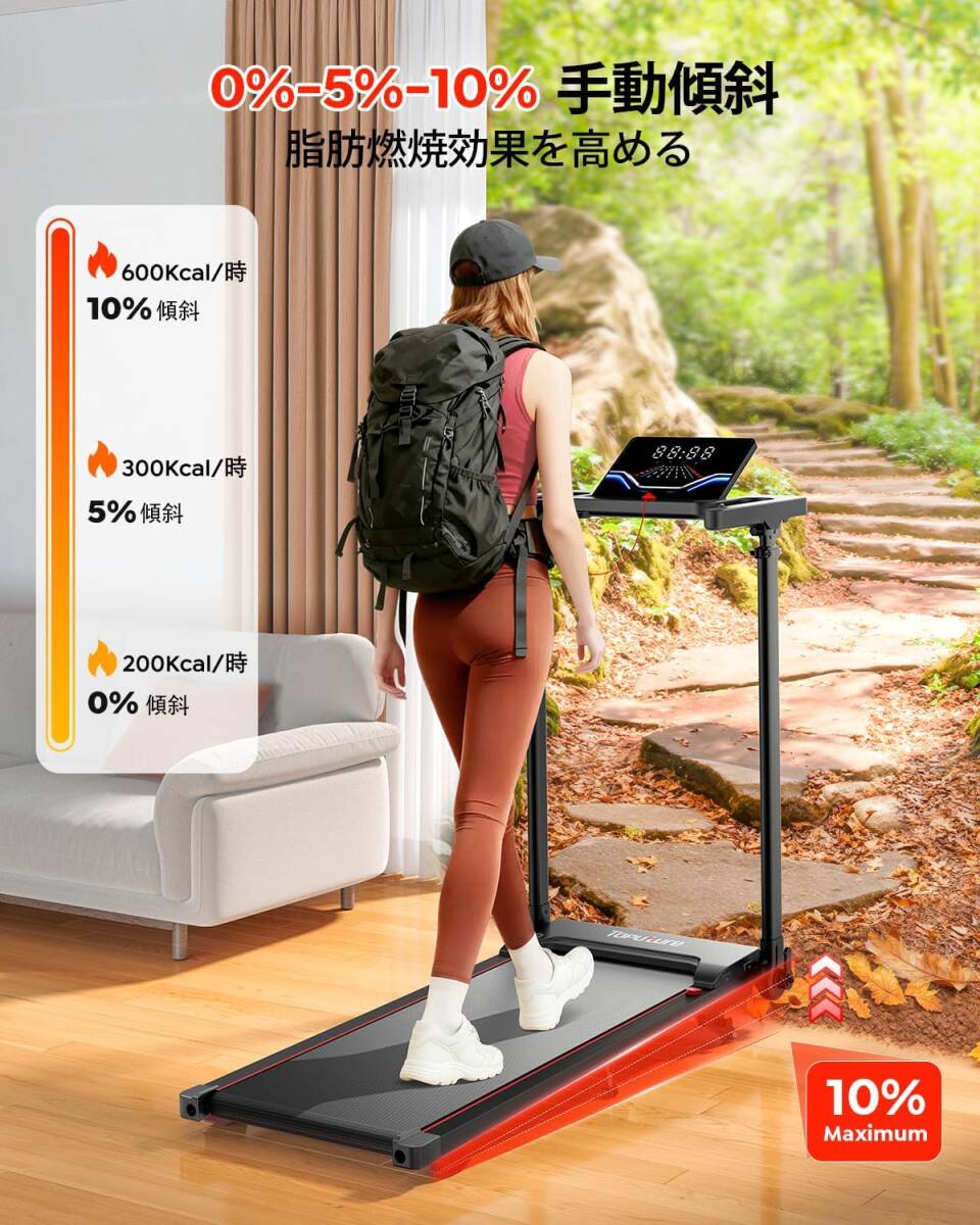 ルームランナー 0%-5%-10%マニュアル傾斜 伸縮式ライザー 時速1~12km 電動ランニングマシン APP連動 多機能 薄型 広幅走行面