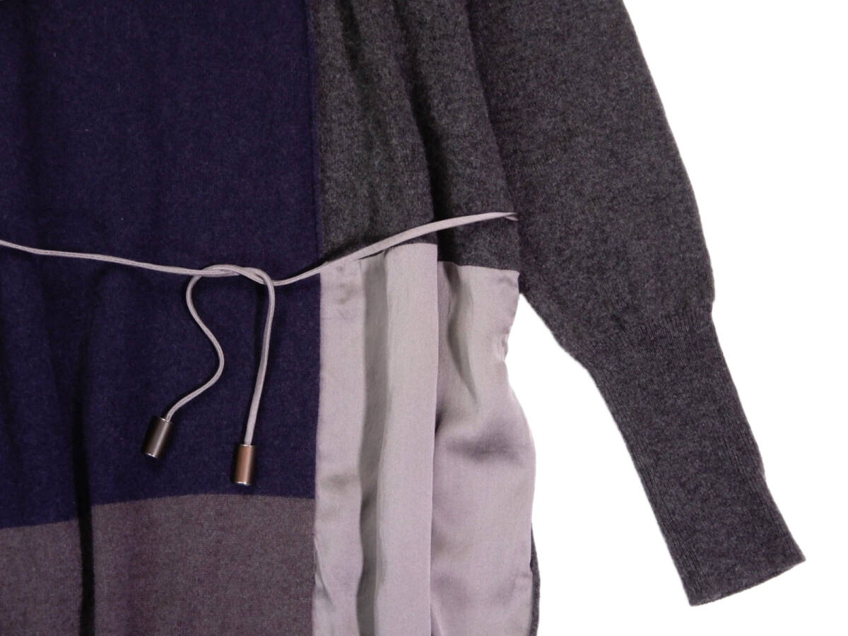 ・上質素材を贅沢に組み合わせた、ファビアナフィリッピらしい大人のラグジュアリー感漂うニットワンピースです。 柔らかなカシミヤとウールの温かみ、サイドにあしらわれたシルクの上品な光沢が美しく、1枚で洗練されたスタイルが完成します。 ウエストはコード紐で軽く絞れるため、体型を選ばず着られ、スタイルアップも◎ 落ち着いたカラー切り替えがシンプルながら印象的なデザインです。 コートの中でももたつかない上質ニットなので、秋冬のデイリーからお出かけまで幅広く活躍します。 ◇状態 :目立った傷や汚れなし ◇仕様 裏地 : なし 伸縮性 : あり お洗濯 :ドライクリーニング ◇サイズ表記 : I42/S ◇実寸 :肩幅52・身幅47・着丈83・袖丈46㎝位 *素人採寸ですので多少の誤差はご容赦ください ◇素材 :毛75 絹15 カシミヤ10 部分 絹95 ポリウレタン5% ◇カラー :ネイビー・グレー・モカ系 * 実物に近いように撮影しておりますが、各御家庭でのモニター環境等により、お色など見え方が異なる事がある事をご理解の上、入札をお願い致します。 | ||