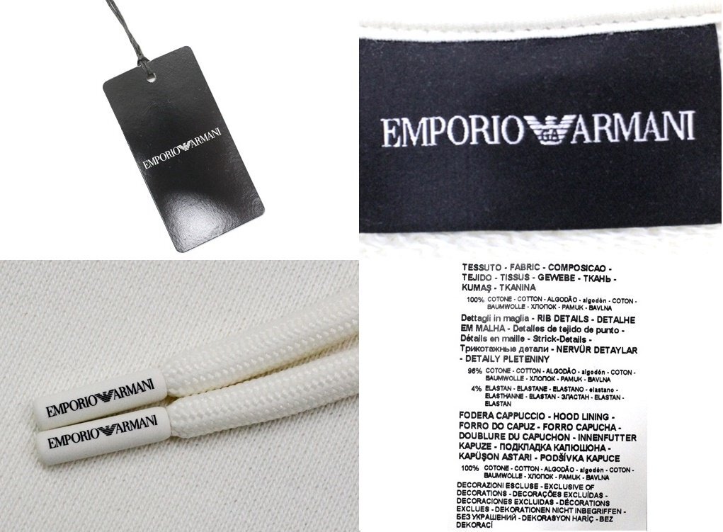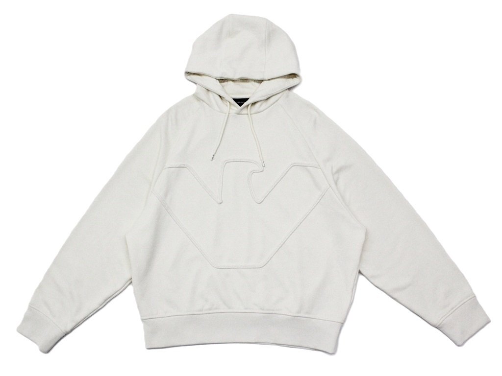 6万新品◆L◆EMPORIO ARMANI アルマーニ◆イーグルロゴ ロープエフェクト コットンフーディ―スウェットパーカー ホワイト白