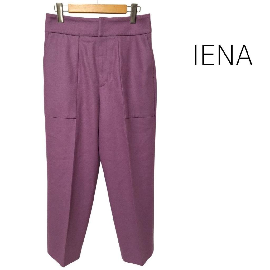 【送料込】 IENA イエナ パンツ パープル 紫 無地 ウール 毛 ハード圧縮パンツ テーパード ハイウエスト 定価17 ,600円 size38 M/975182