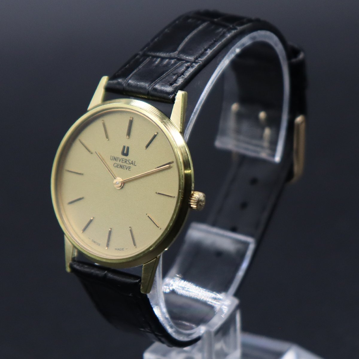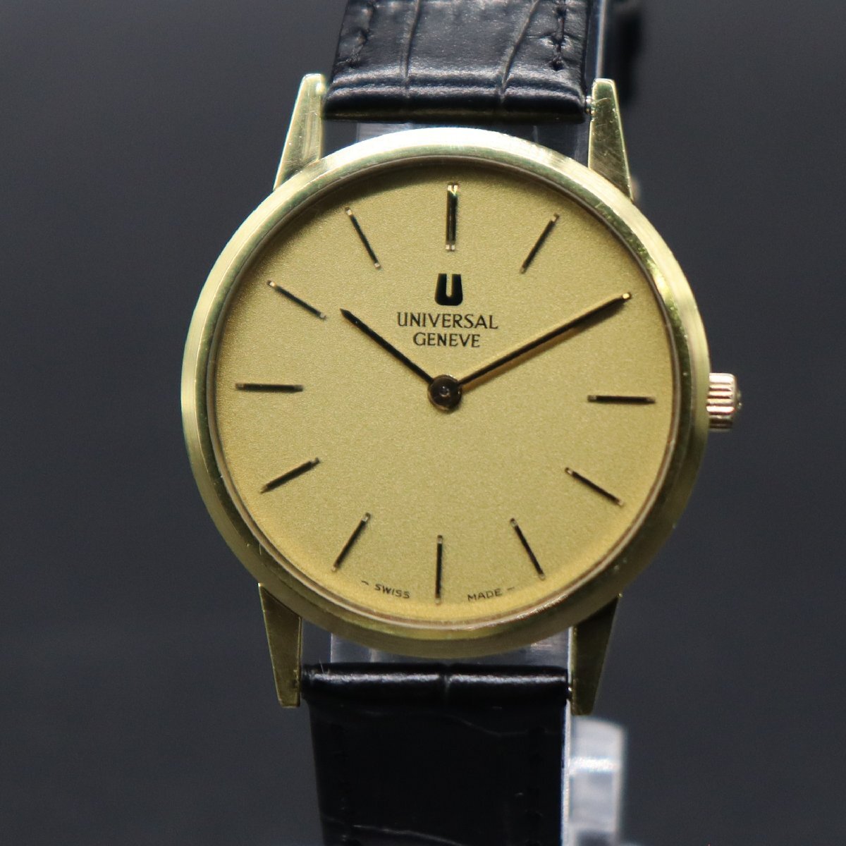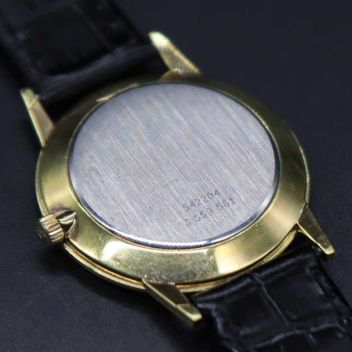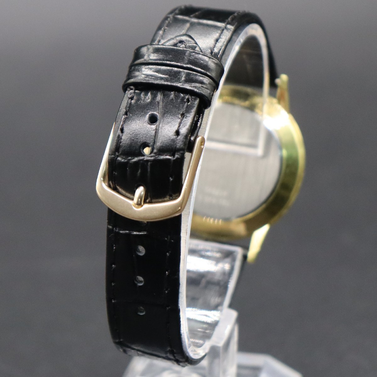 令和7年11月、当店専属の時計修理店/一級時計修理技能士にてOH済です。 OH後、平置きで24時間動作確認済み、±30秒以内で遅れなく稼働中です。 この機会に是非、お手元でご愛用頂ければと思います。 リューズ巻止まりOK、一段引きで時間調整可能です。 薄型ケース全体に経年の小キズや小打痕ございますが、 ガラスはわずかに小キズ見られるものの目視で目立たず、 文字盤は目立つ傷なく、針・インデックスも目視で状態良く、 比較的きれいなダイアルです。 リューズ、小傷みございますが、ロゴマーク付きの純正品です。 ベルトは、新品の国内メーカー製革ベルトに交換済みです。 アンティークですので、詳しくは画像にてご判断願います。 | |