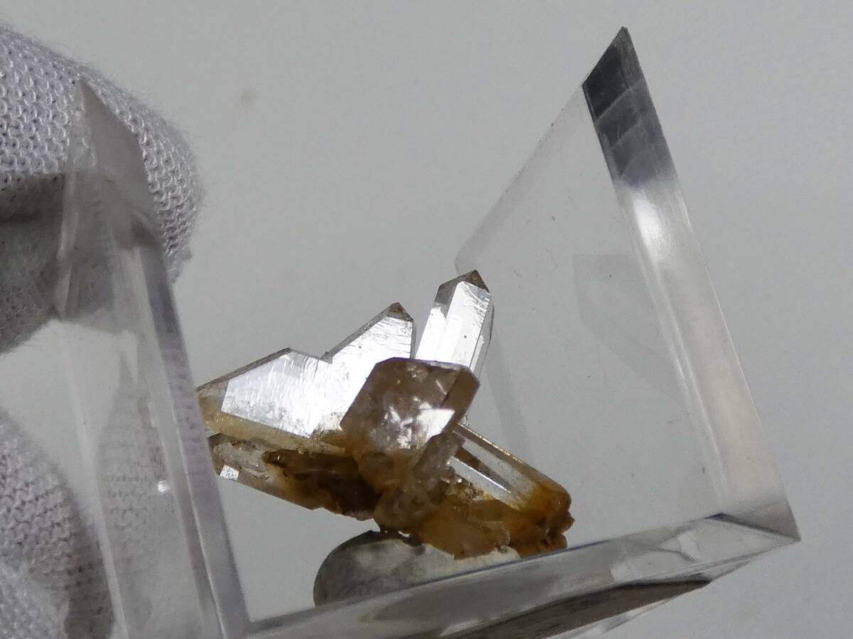 大珍品です。普通の双晶の横に立っている水晶と三連になっています。