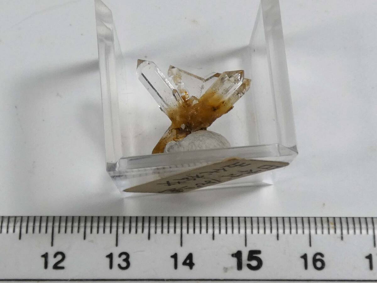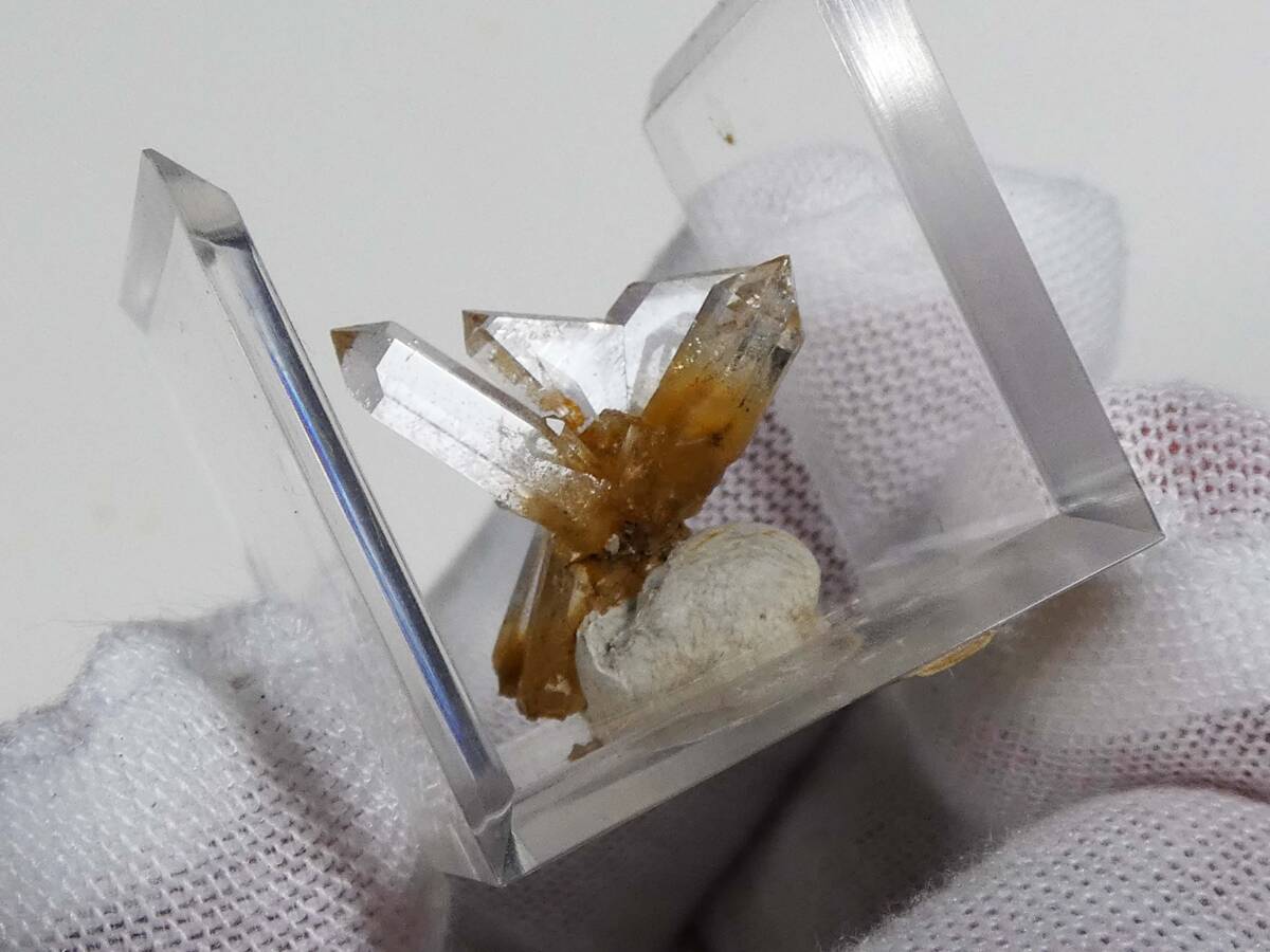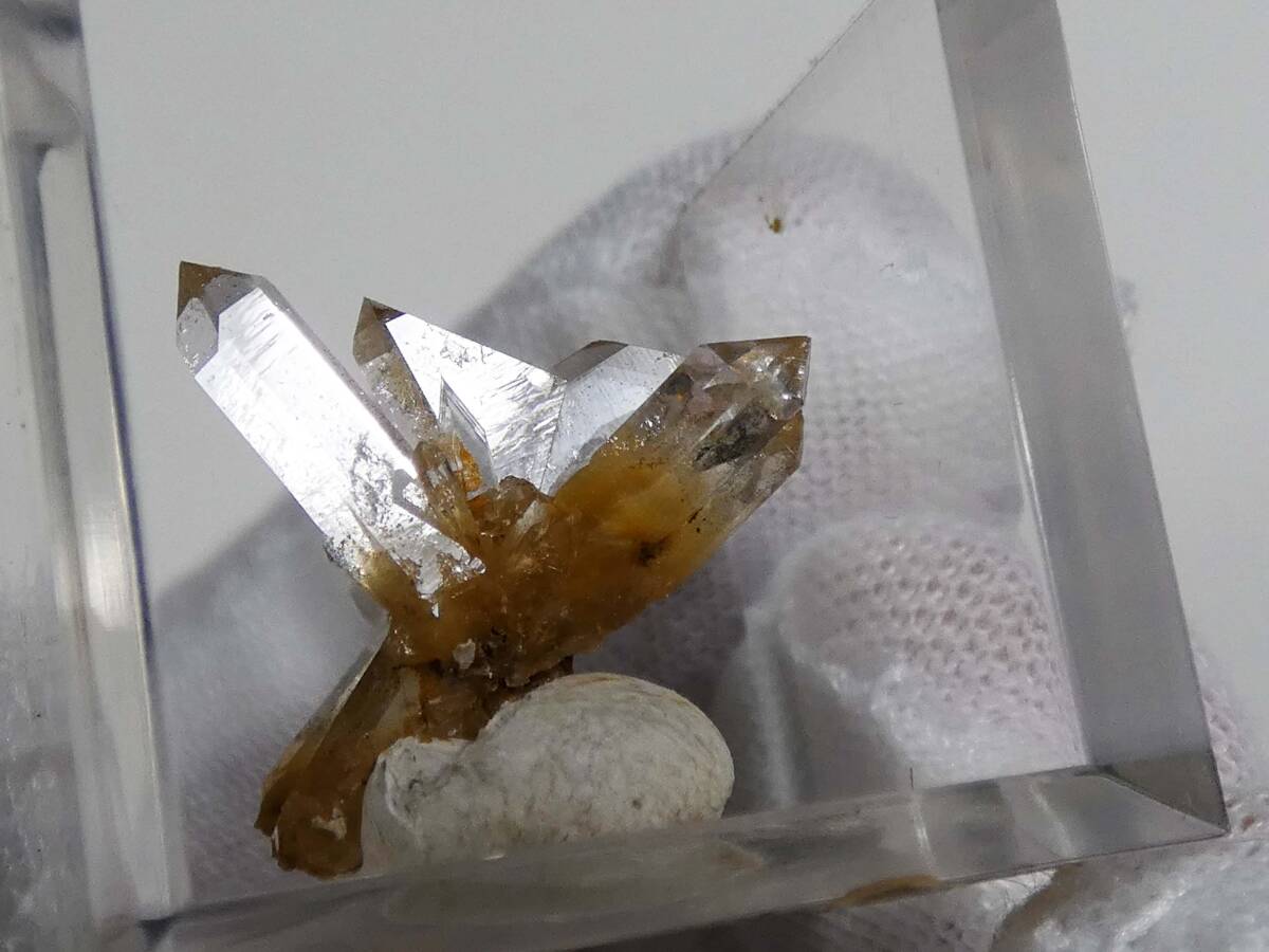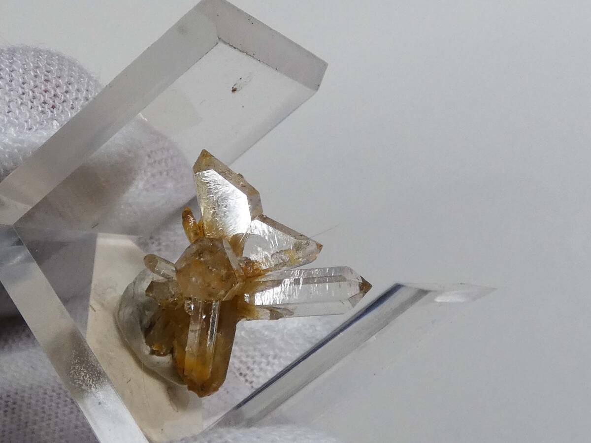 国産鉱物 五代松鉱山の黄水晶の日本式三連双晶 <大珍品> 180度
