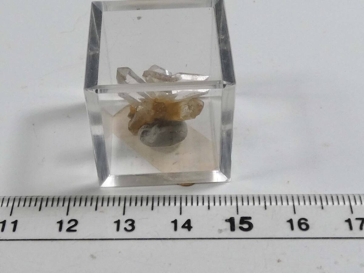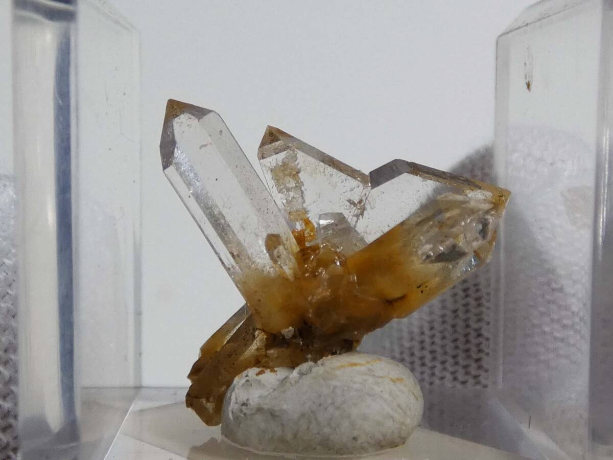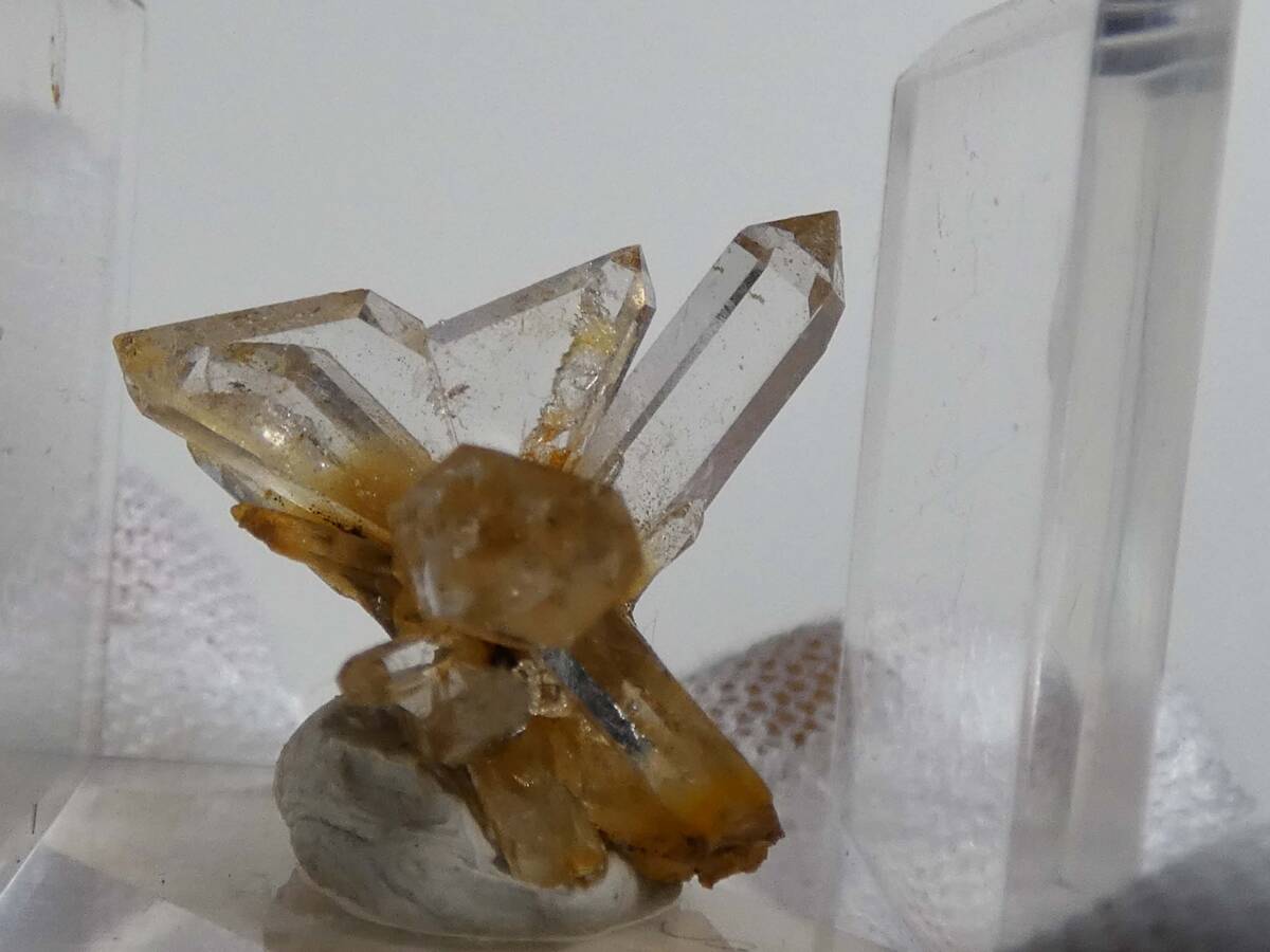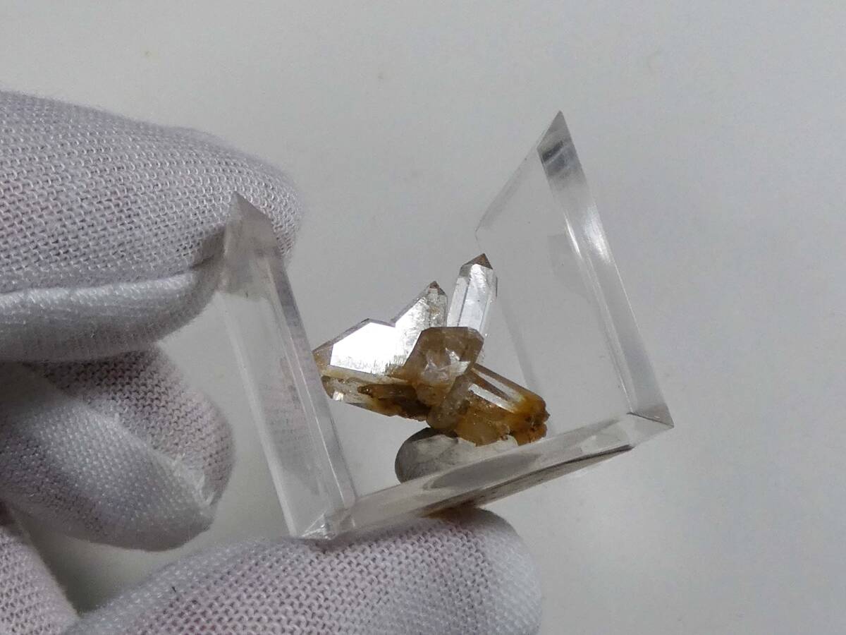 国産鉱物 五代松鉱山の黄水晶の日本式三連双晶 <大珍品> 180度