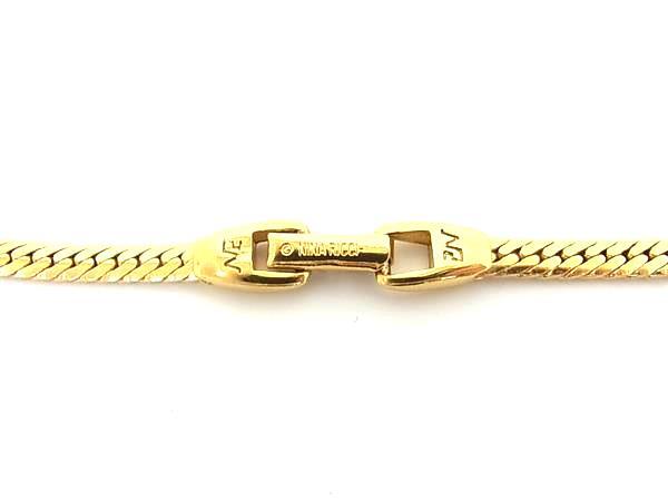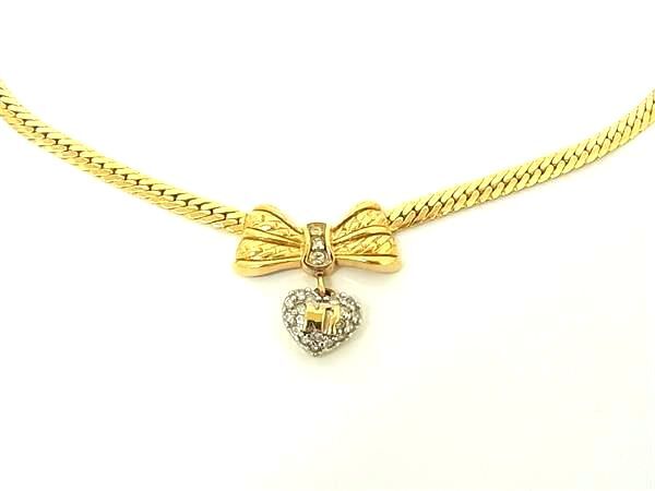 ■美品■ NINA RICCI ニナリッチ ラインストーン リボン ハート ネックレス ペンダント アクセサリー ゴールド系 DK3275