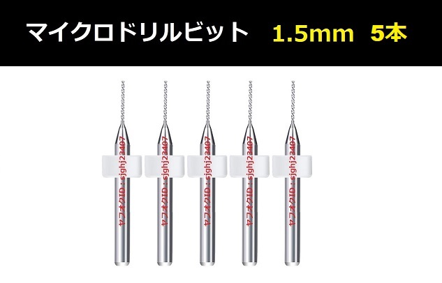 Ⅱ■ 送料無料 超硬マイクロドリルビット 5本セット 1.5mm 精密ドリル 極細マイクロドリル刃 リューター ケース付 ルーター 5本組