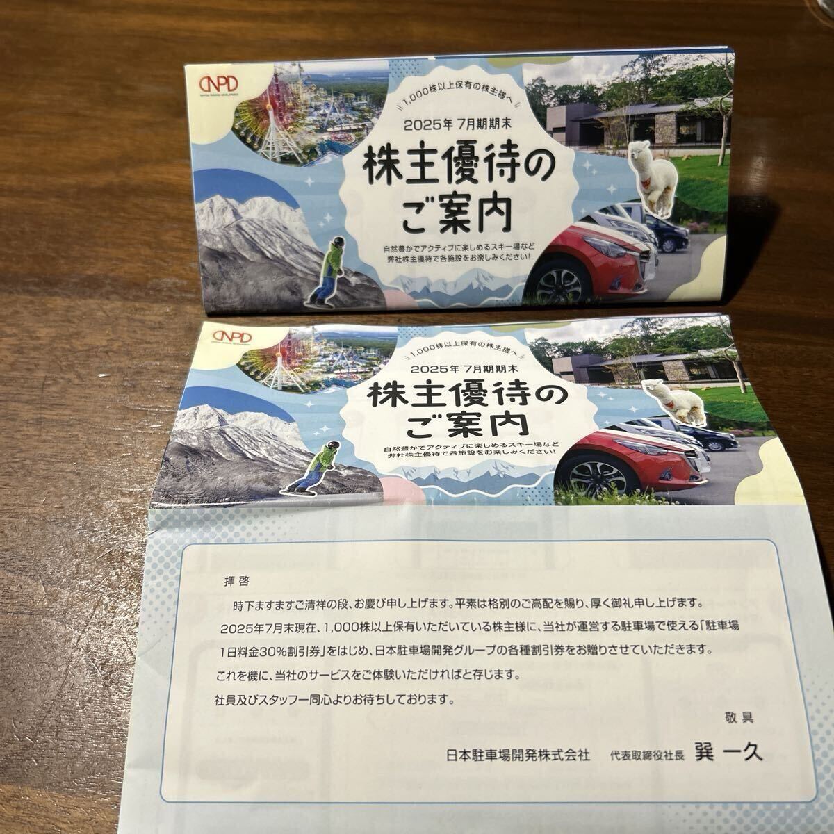 日本駐車場開発株式会社が発行する「株主優待券」です。