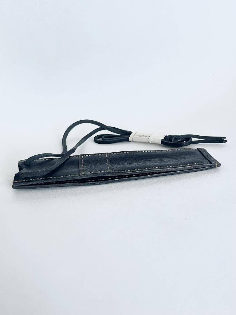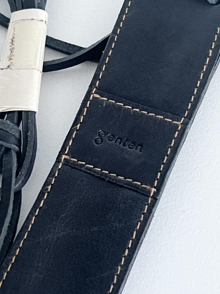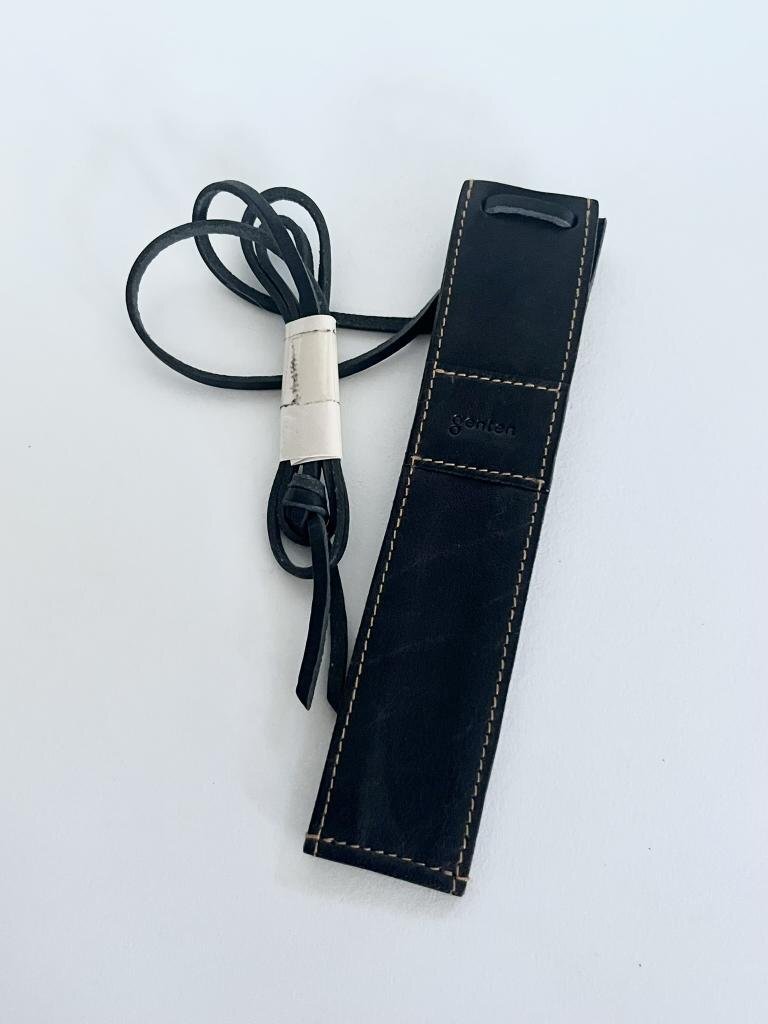 新品未使用品【送料込】genten ゲンテン ストラップ付きレザーペンケース 全長16 幅3.5 黒に近いネイビー 雑貨 小物 6460428