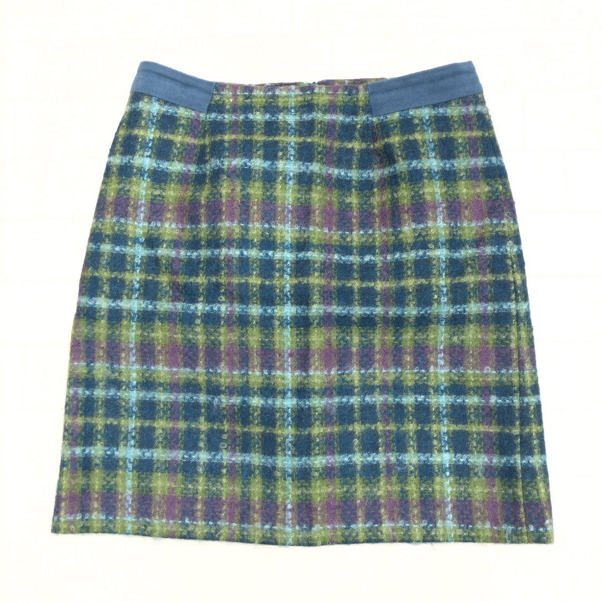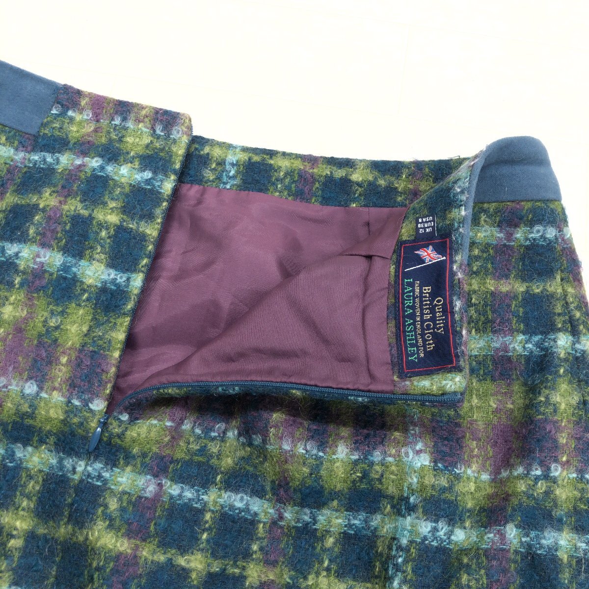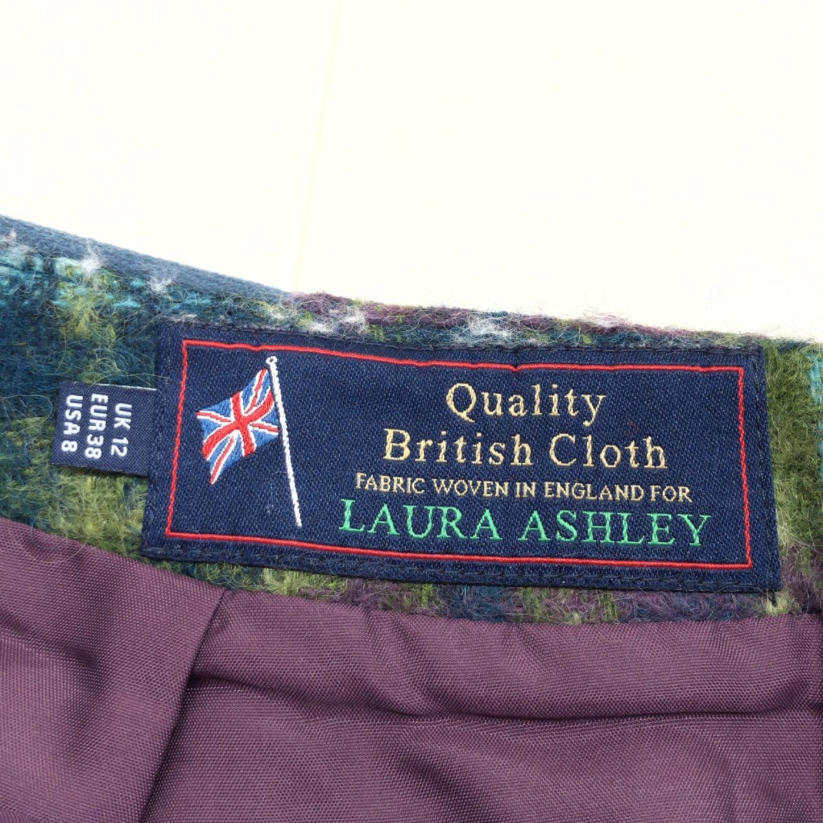 LAURA ASHLEY ローラアシュレイ 英国Quality British Cloth社製生地 ウール モヘヤ ニット スカート UK:12(JP:L相当) w78 ミディ丈
