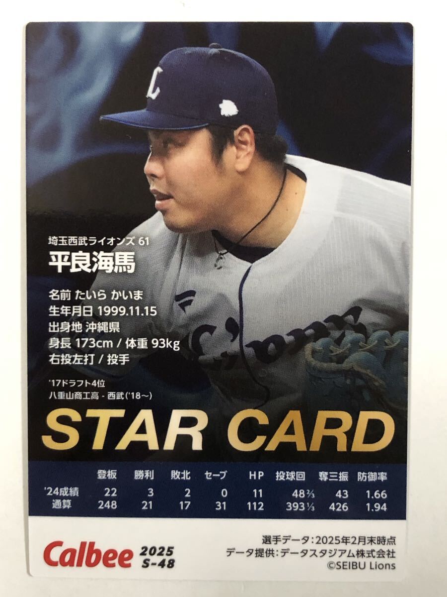★2025カルビープロ野球チップス【埼玉西武ライオンズ・平良海馬】スターカード★