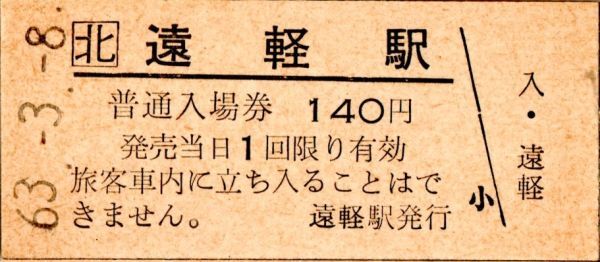 JR北海道エリア [北] 遠軽駅(石北本線)入場券 140円券