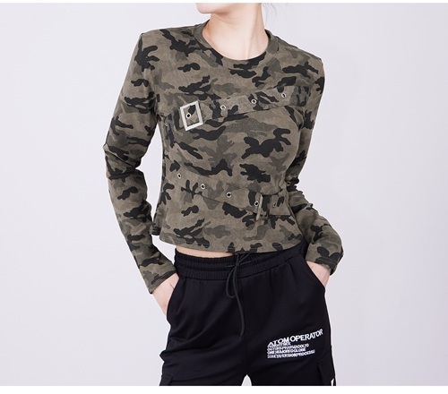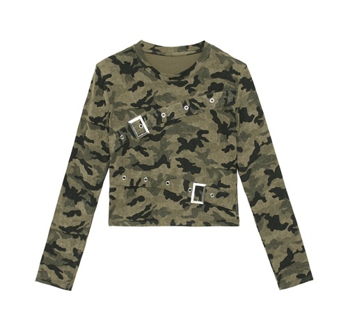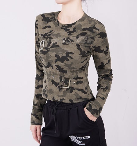 カットソー トップス 長袖Tシャツ(カーキ)迷彩 カモフラージュ 新品