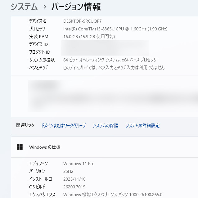 2025年11月リリースの最新バージョン「25H2」へアップデート済みなので、購入後すぐにご利用いただけます。