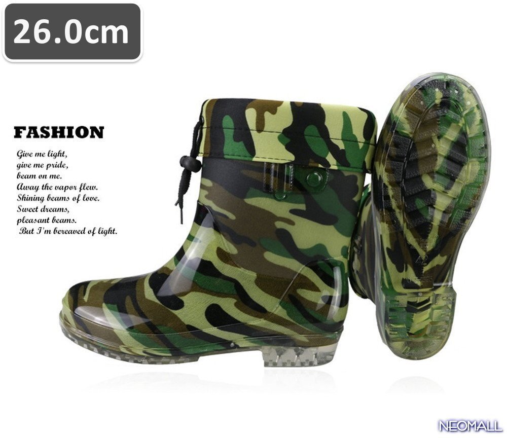 雨対策 ☆【482】メンズ レインシューズ 迷彩 26.0cm オシャレ ショートブーツ シンプル 梅雨 雨 長靴 雨靴 防水