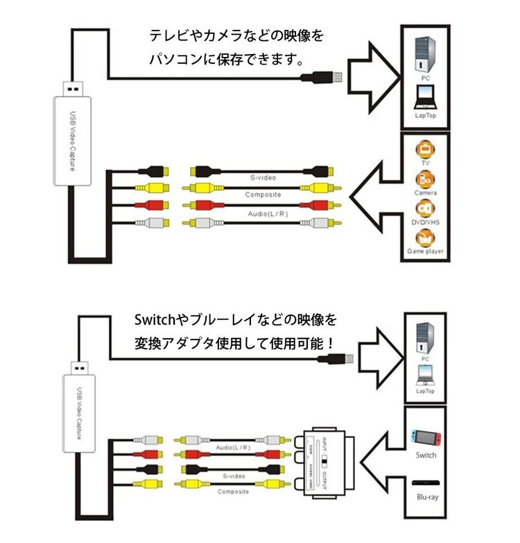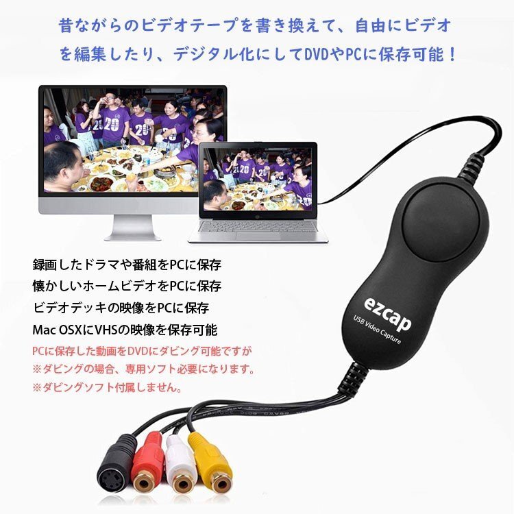 ◆MacBook対応ビデオキャプチャー Windows・macOS両対応 ビデオ映像をパソコンにデジタル化保存 USBキャプチャー ビデオ/VHS 8mm DVD ダビング コンポジットビデオ(RCA) S端子対応 Mac対応映像転換器 EZCAP159