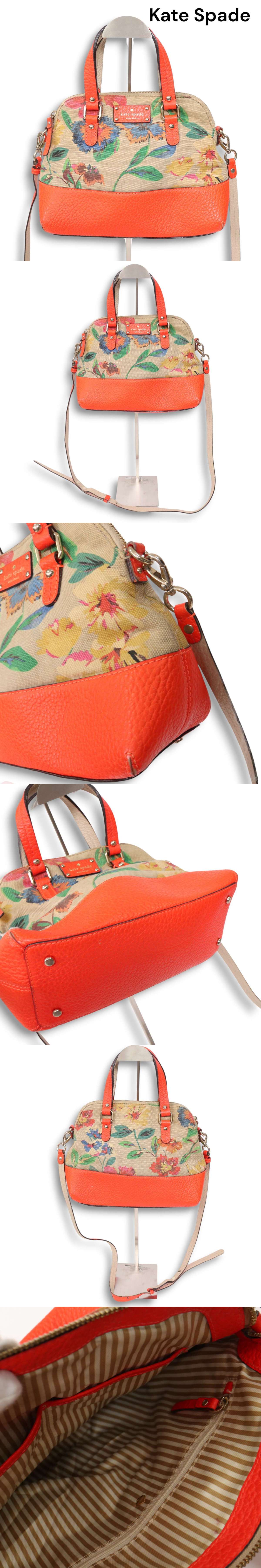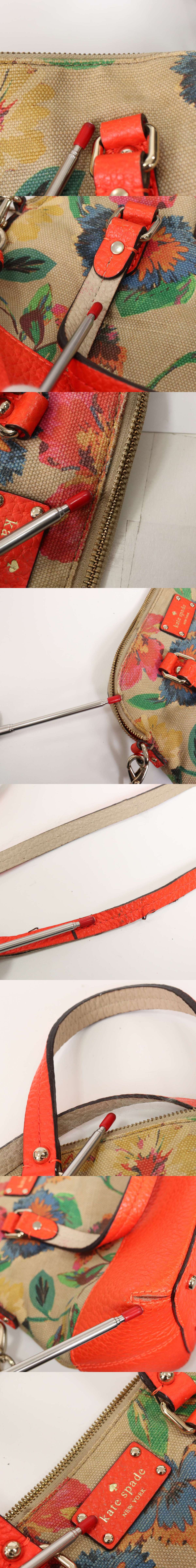 Kate Spade ケイトスペード 花柄♪ フラワー レザー キャンバス ショルダー ハンド バッグ Sz.F レディース
