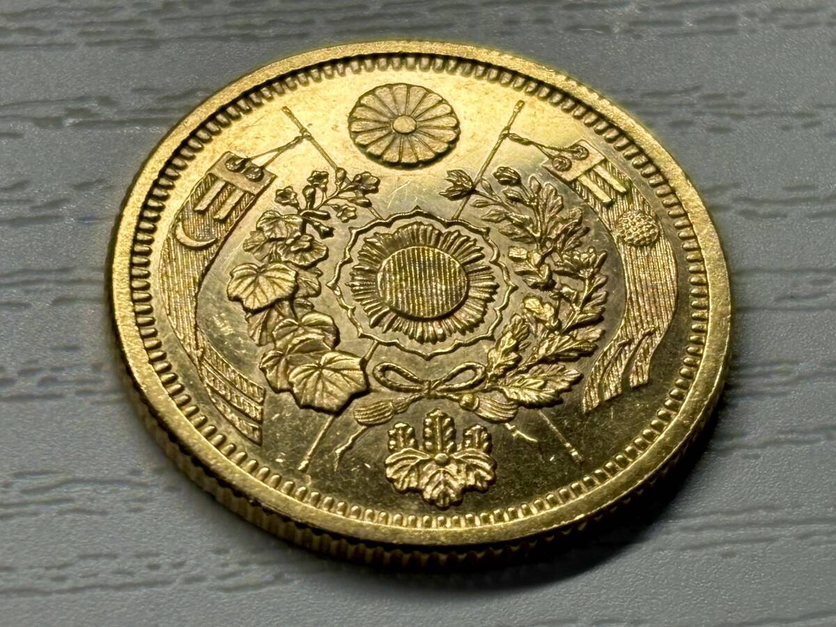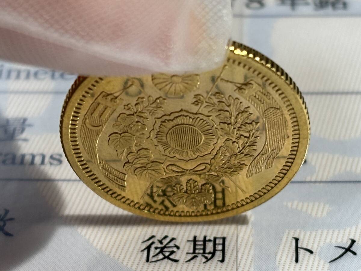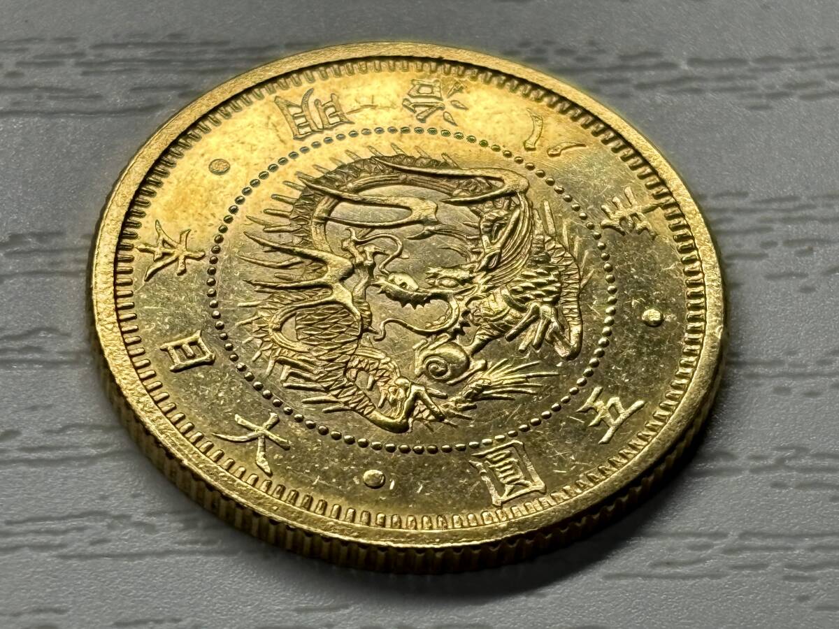 動画あり 明治8年 後期 旧5円金貨 縮小 日本貨幣商協同組合 鑑定書付き 1875年 特年 古銭 金貨 アンティーク 近代金貨 近代銭 旧五円金貨