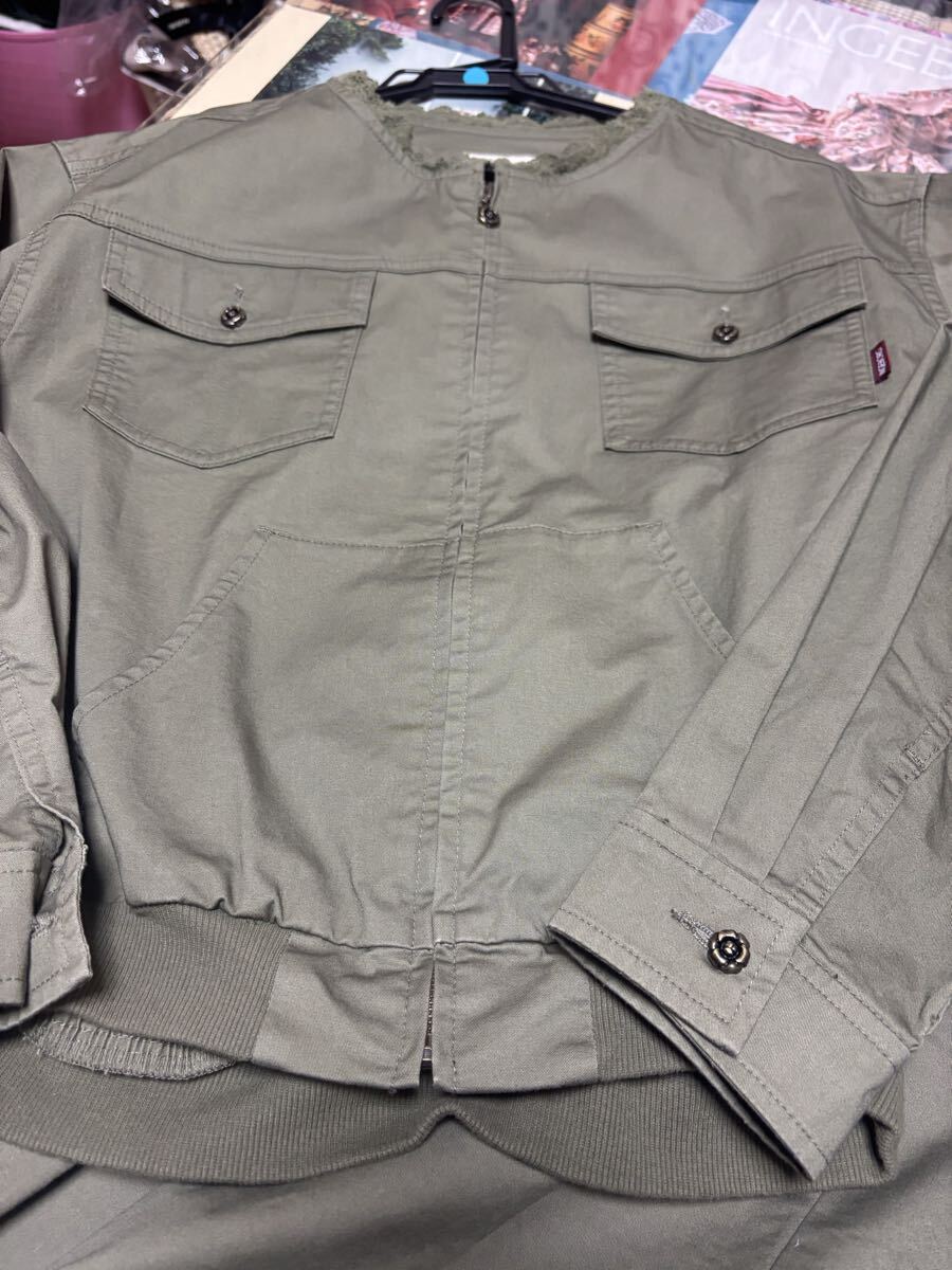 サイズ・・JK 身幅50、着丈55㎝位。スカート ウエスト幅ゴム37〜40、着丈80㎝位です。お色はカーキ系です。