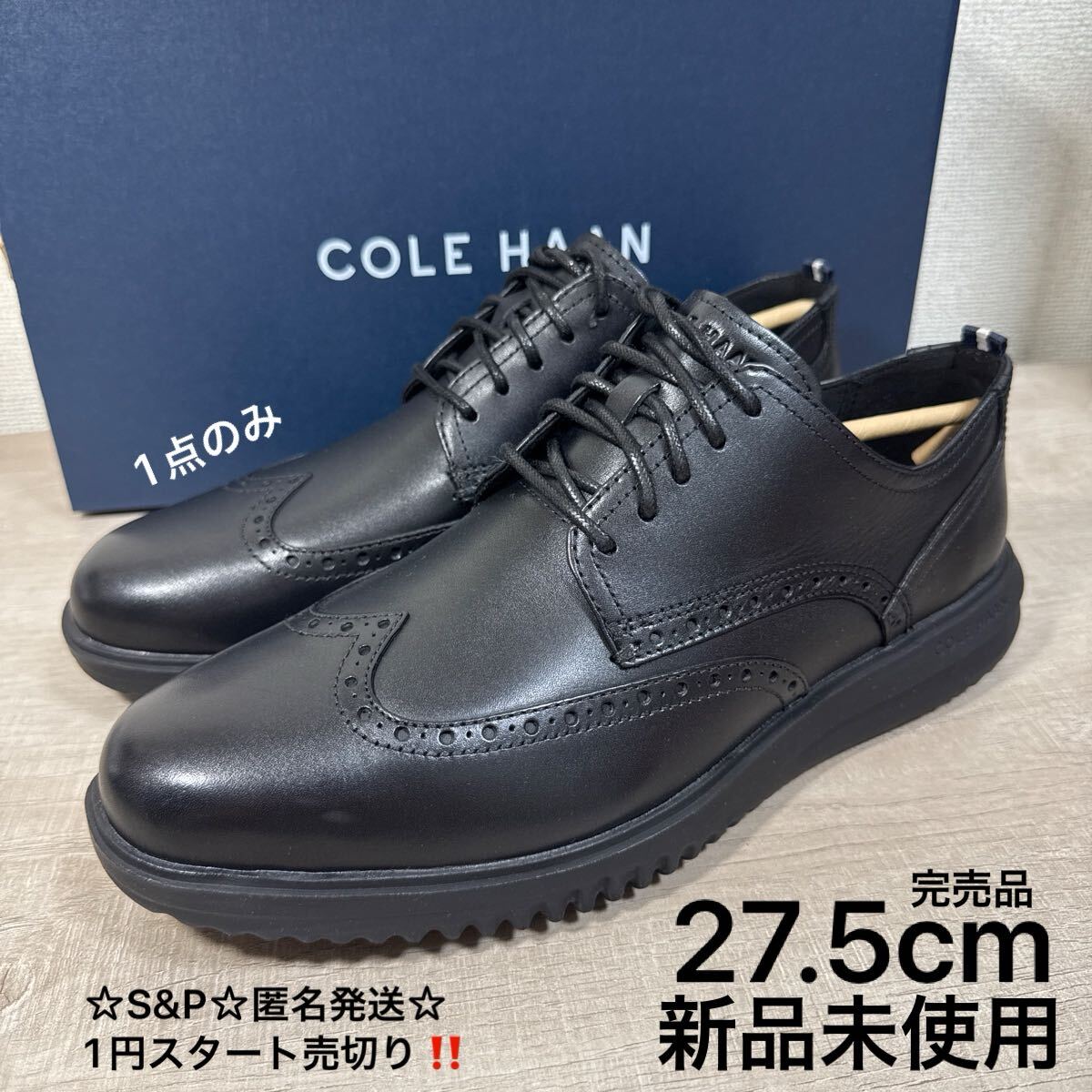 1円スタート売切り 新品未使用 27.5cm 完売品 COLE HAAN グランドプラス ウィングチップ オックスフォード ビジネス シューズ ブラック