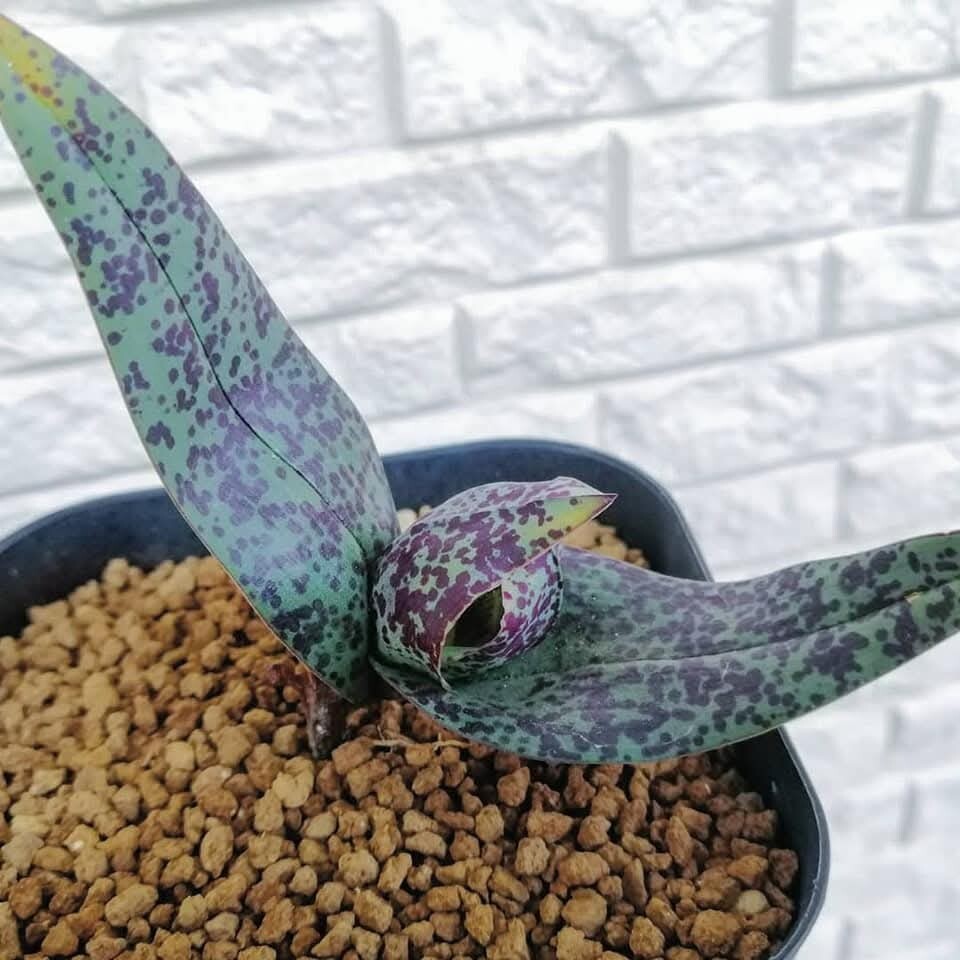 ○ケープバルブ「アンドロシンビウム SP」の種子の出品です。写真1のような濃紫のドットのある葉っぱを持つ魅力的な球根植物の種子です。