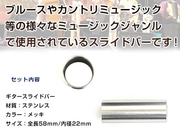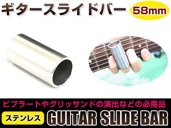 メール便 貫通型 ギター ステンレス スライドバー 60mm ボトルネックギター スライドギター ブルースなど スライドボトル