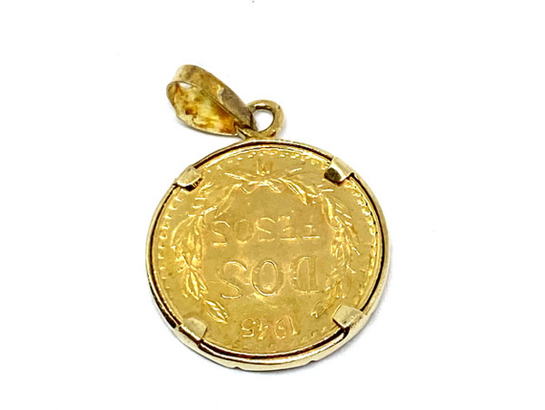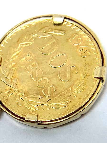 【即決】 K18 21.6 メキシコ金貨 2ペソ 金貨 ペンダントトップ ペンダント トップ コイン ゴールド DOSコイン 1945年 2.3g