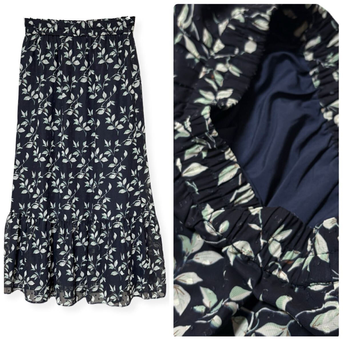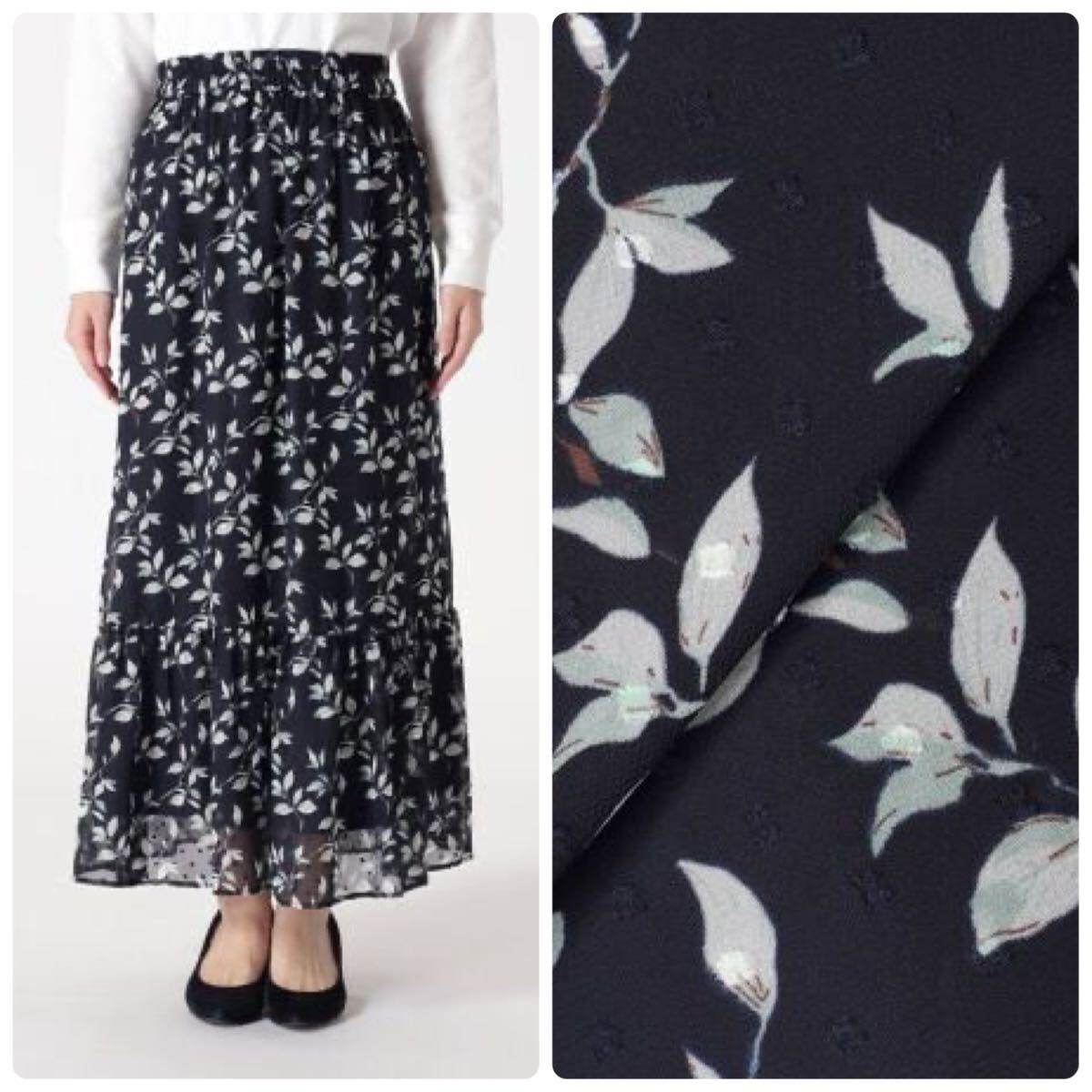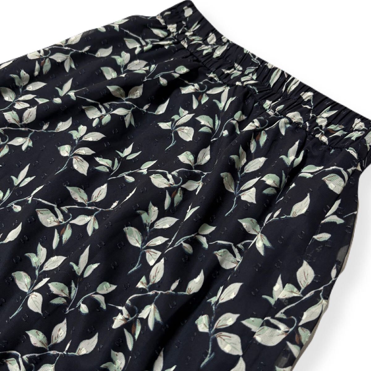 透け感が軽やかなリーフ柄スカートです。