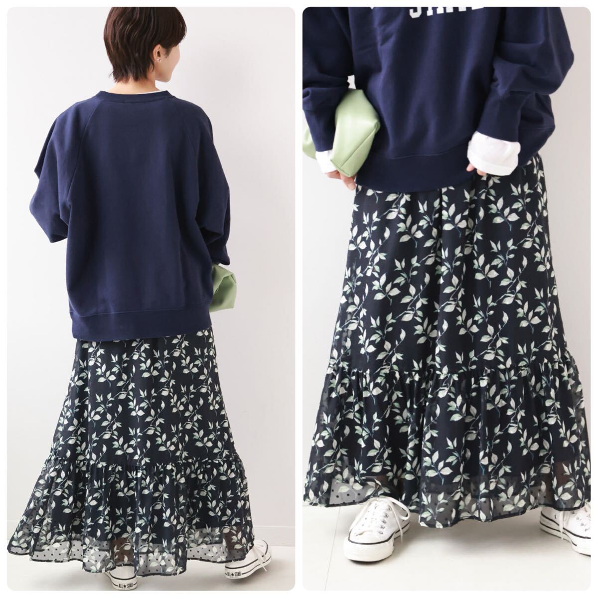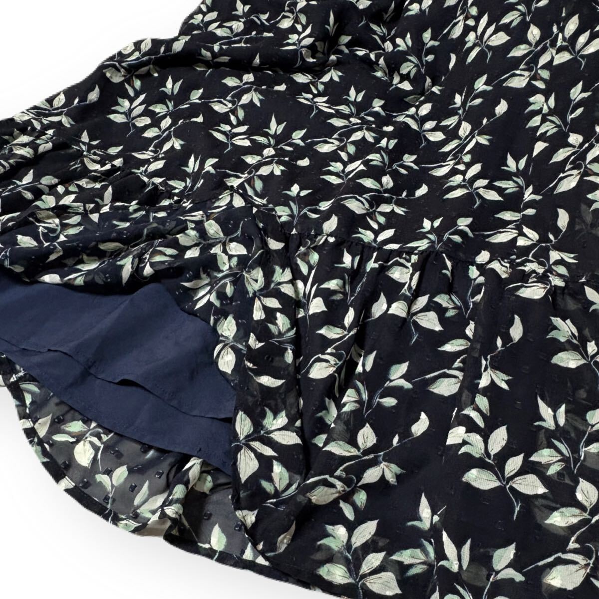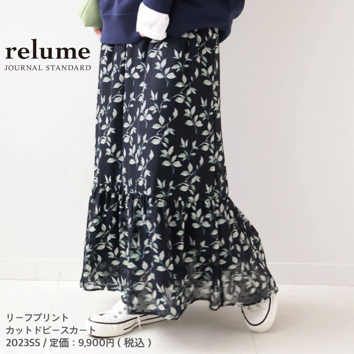 透け感が軽やかなリーフ柄スカートです。