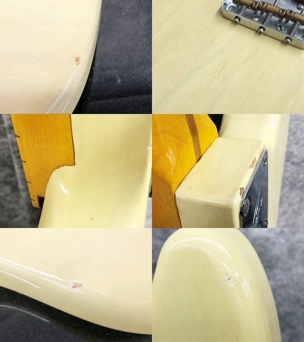 ◆外観◆ ・★外観にキズ、汚れ、使用感があります。 ・★弦長(スケール):約645mm ・★ナット幅:約42mm ・★打痕が見受けられます。 ・★ネックポケット部分に塗装クラックがあります。 ・★ネックに若干の順反りがあります。 |