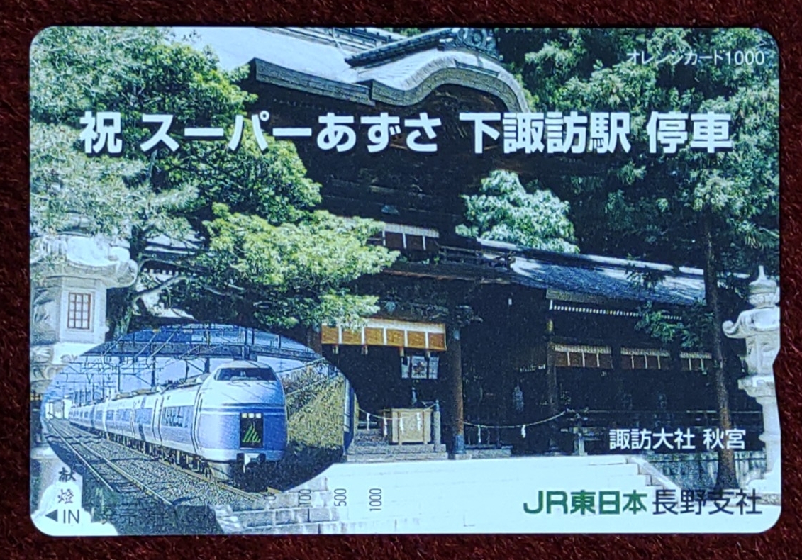 祝 スーパーあずさ 下諏訪駅 停車 JR東日本長野支社《未使用1000円券》オレンジカード オレカ コレクション放出