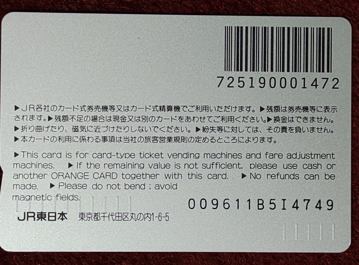 ごく稀に磁気不良の場合があります。その場合は申し訳ありませんがJR各社・主な駅のみどりの窓口まで持ち込んでいただき、返金処理をお受け願います(国鉄・JR他社のカードも返金してくれます。少々日数がかかります)。