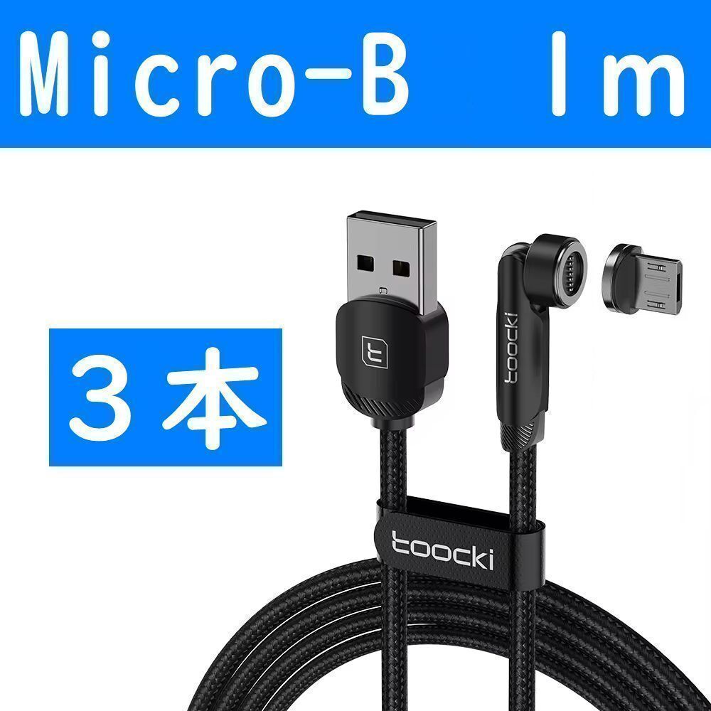 Micro-B 1m黒色3本曲るマグネット磁石式USB充電通信ケーブル