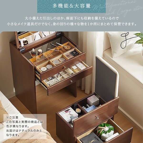 | チェア付き コンパクトマルチ収納ドレッサー! チェアを収納すると一見普通のキャビネットのように見えるスタイリッシュなドレッサーです。 1・2・4段目が収納になっており、収納力もあります。 |