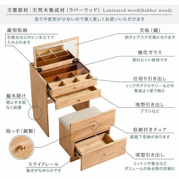| 【カラー】 ナチュラル 【サイズ】 W60×D52×H82.8(天板を開けた場合:H113.2)cm ※奥行は取っ手を含みます。 【重量】 51.3kg 【素材】 ラバーウッド、メラミンボード、合皮、ウレタン、ミラー、57kg強化ガラス 【梱包】 サイズ:W72.5×D62.5×H89cm、重量:57kg 【組み立て品】 お客様による組み立てが必要です。 【ご注意】 ・サイズ、重量は概算です。 ・商品カラーはご使用のモニターによって実際の明るさや色と異なって見える場合がございます。 |