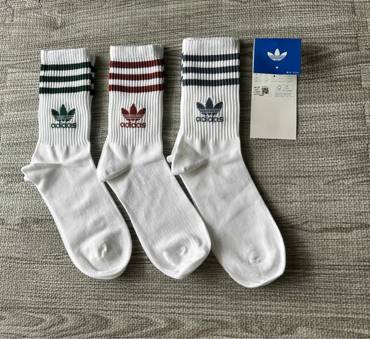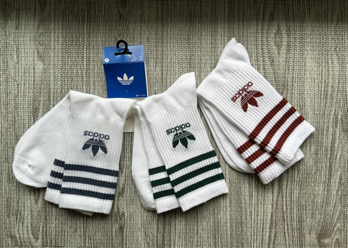 adidasのストライプデザインソックス。