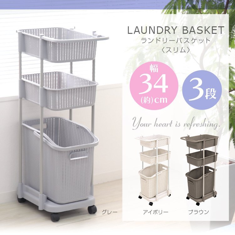 ナチュラルカラーのおしゃれなランドリーバスケットです♪