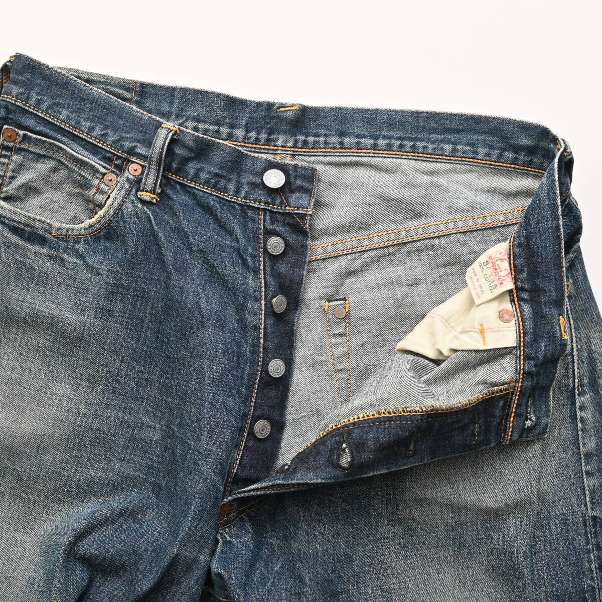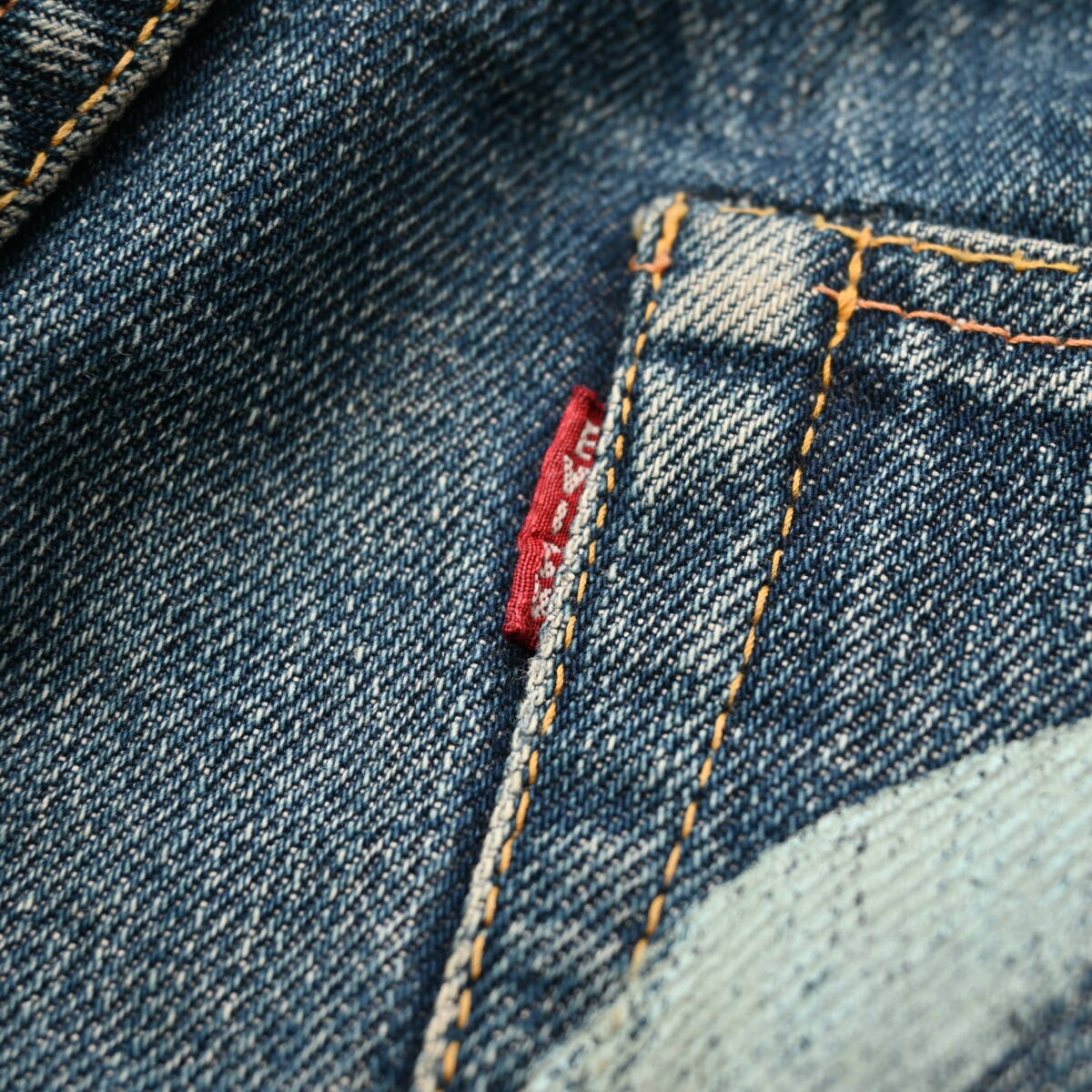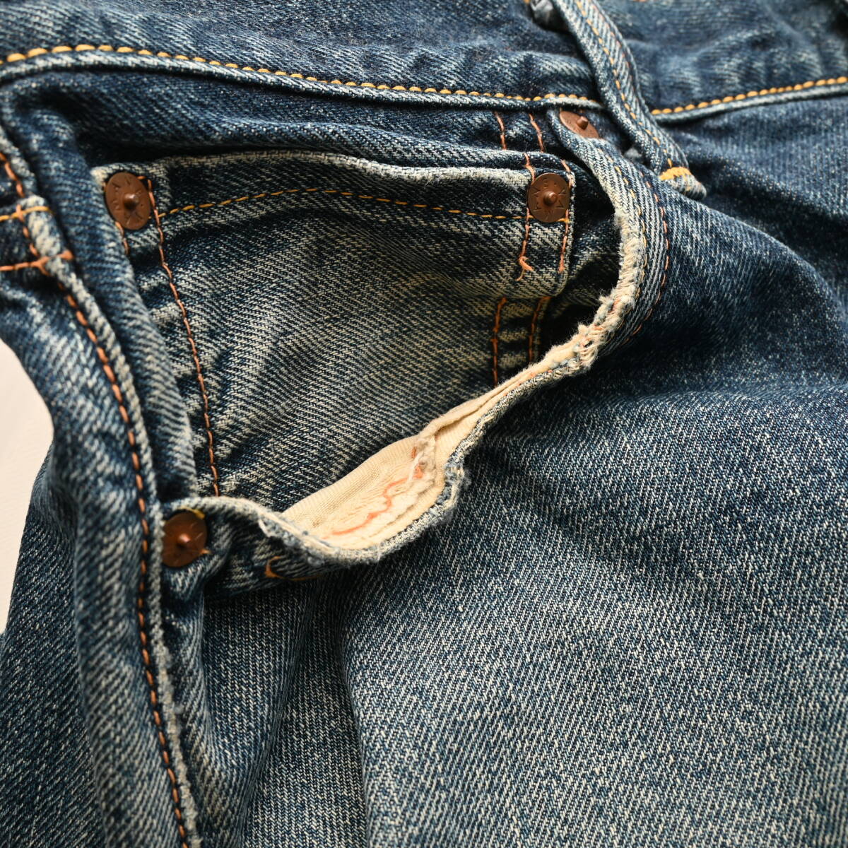 裾・ポケット口・ヒップにほつれとステッチ切れあり。