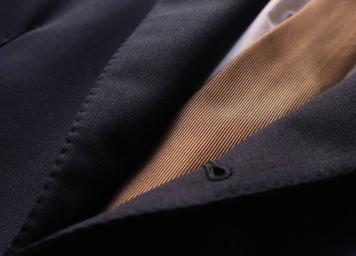 裏地のないスフォデラート仕様のため、大検裏は剣先を手まつり縫いで形を作っています。ハンドメイドならではの手まつり縫いが見られます。