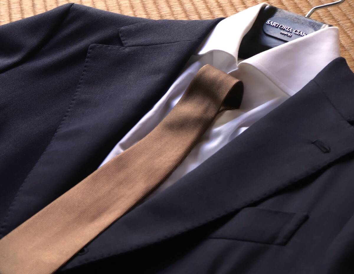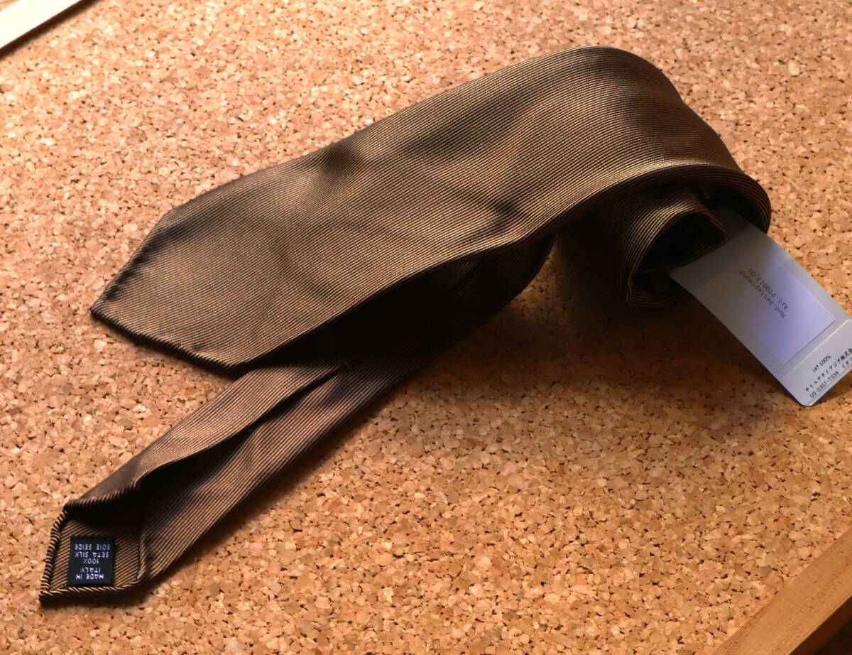 「タイ・ユア・タイ」のアイコン的モデル"セッテピエゲ"のシリーズは、イタリア語で「7つ折り」と言う意味です。通常の倍近い生地を贅沢に使用。折り込まれた生地が芯の代わりとなるため、芯地無しで作られます。本品は7回折りよりさらに多い10回折りのディエチ・ピエゲになります。